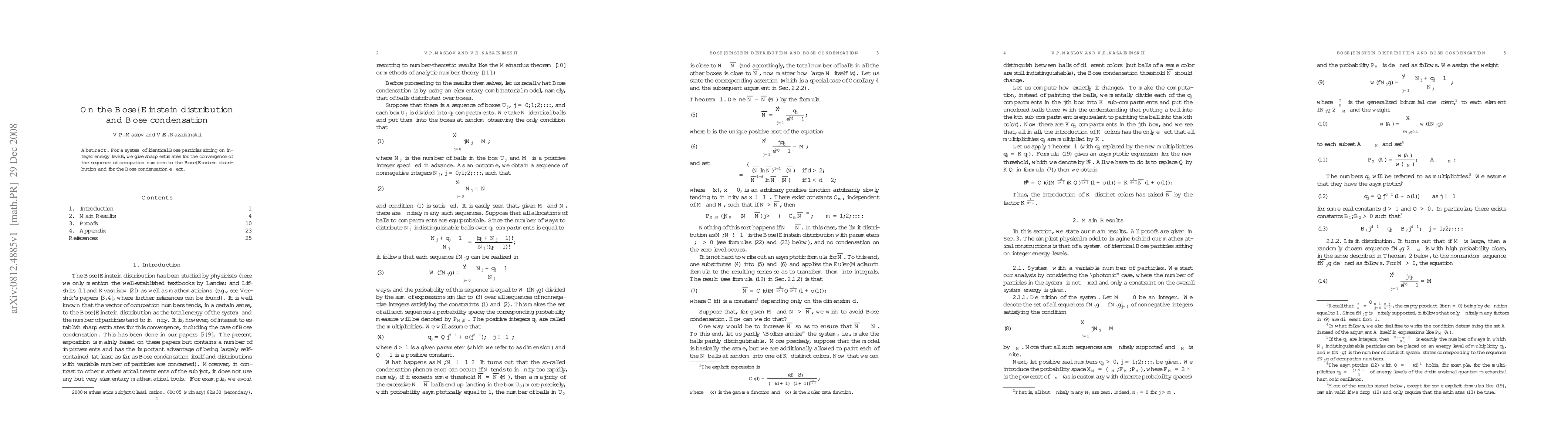 For a system of identical Bose particles sitting on integer energy levels, we give sharp estimates for the convergence of the sequence of occupation numbers to the Bose-Einstein distribution and for the Bose condensation effect.