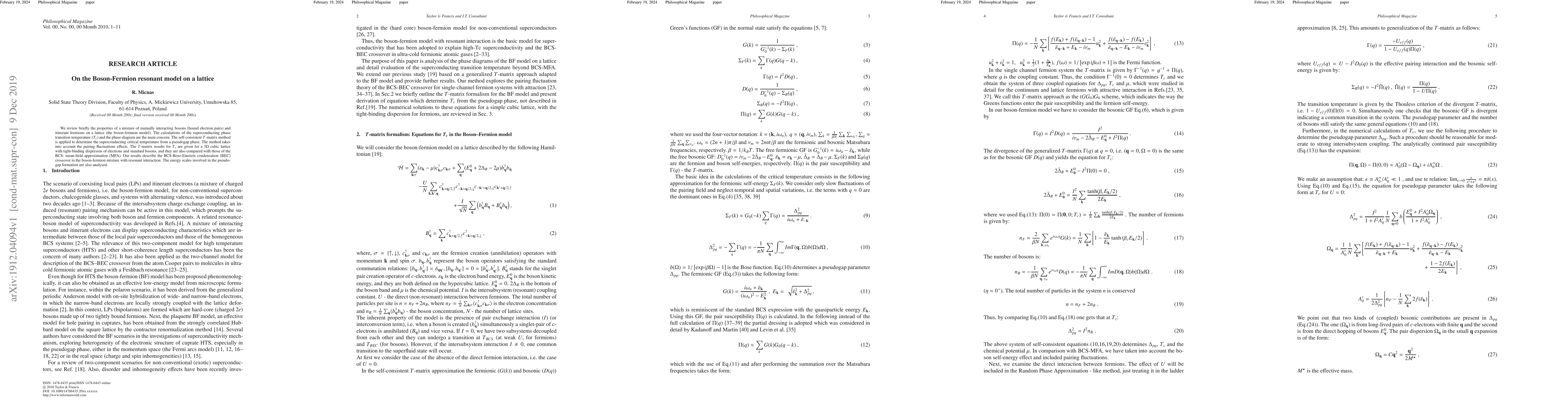 We review briefly the properties of a mixture of mutually interacting bosons (bound electron pairs) and itinerant fermions on a lattice (the boson-fermion model). The calculations of the superconducting phase transition temperature ($T_{c}$) and the phase diagram are the main concern. The self-consistent $T$-matrix method is applied to determine the superconducting critical temperature from a pseudogap phase. The method takes into account the pairing fluctuations effects. The $T$-matrix results for $T_{c}$ are given for a 3D cubic lattice with tight-binding dispersion of electrons and standard bosons, and they are also compared with those of the BCS- mean-field approximation (MFA). Our results describe the BCS-Bose-Einstein condensation (BEC) crossover in the boson-fermion mixture with resonant interaction. The energy scales involved in the pseudogap formation are also analysed. PACS 74.20.-z,74.20.Mn,71.28.+d