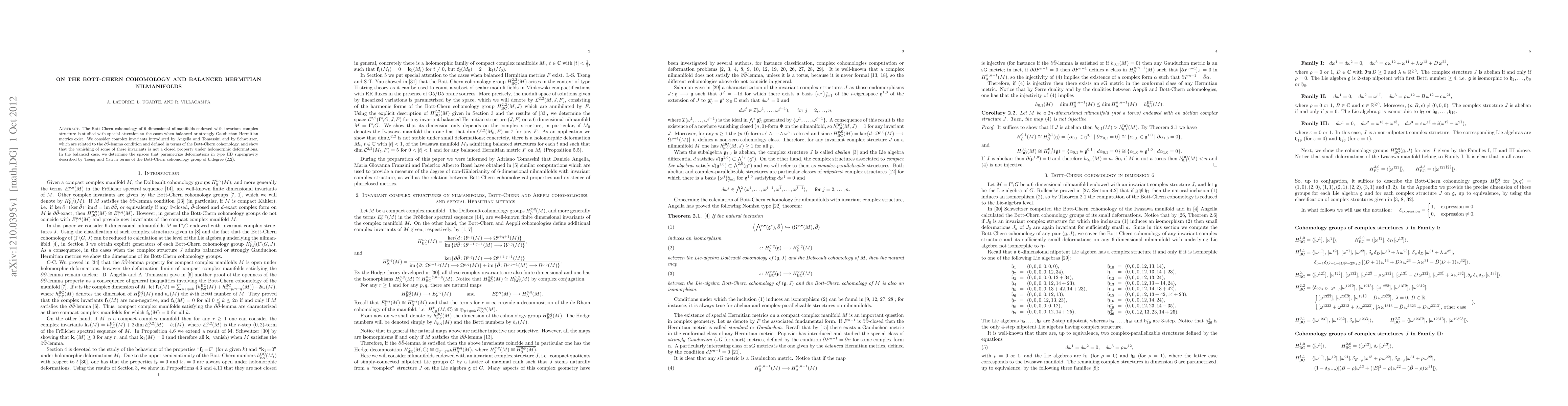 This paper investigates the Bott-Chern cohomology of 6-dimensional nilmanifolds with invariant complex structures, focusing on balanced Hermitian metrics. It reveals that certain complex invariants related to the $\partial \bar\partial$-lemma do not remain closed under holomorphic deformations. The study also connects the Bott-Chern cohomology group of bidegree (2,2) to deformation spaces in type IIB supergravity.