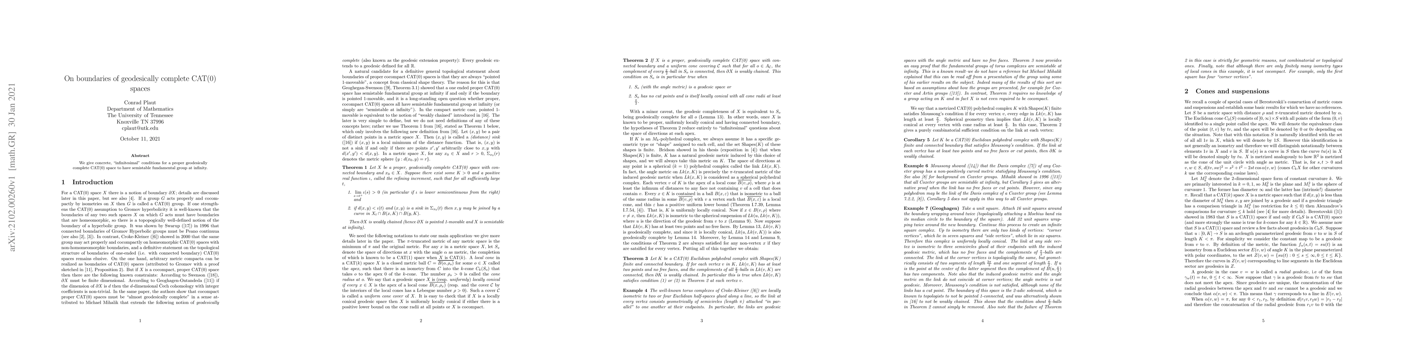 Summary: This paper provides specific conditions for a proper geodesically complete CAT(0) space to ensure the semistable nature of its fundamental group at infinity, focusing on "infinitesimal" geometric properties.
