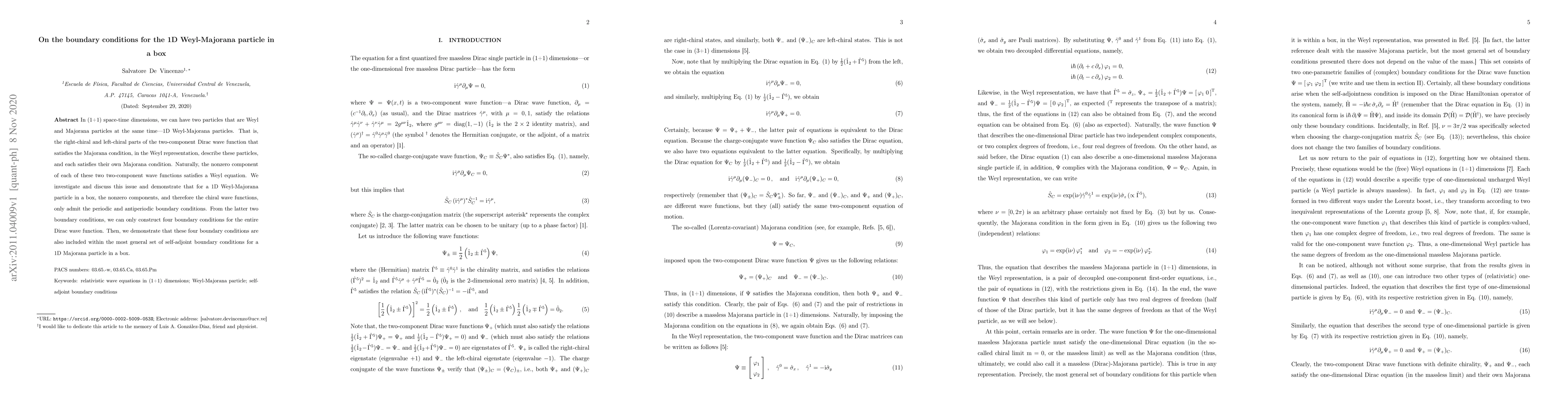 Researchers investigated boundary conditions for a 1D Weyl-Majorana particle in a box, finding that only periodic and antiperiodic boundary conditions apply, limiting the number of possible boundary conditions to four.