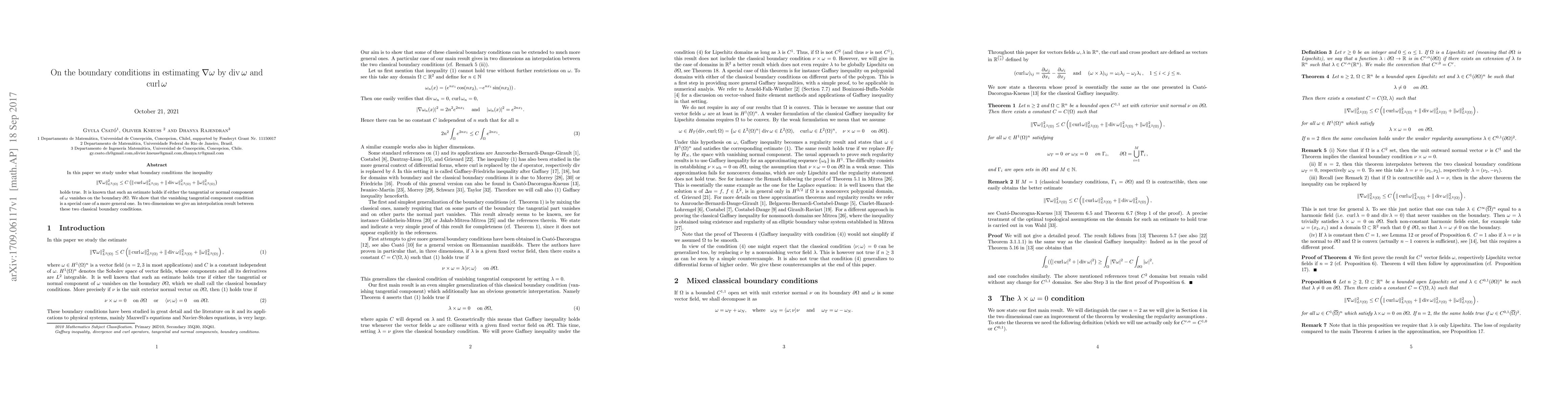 In this paper we study under what boundary conditions the inequality $$\|\nabla\omega\|_{L^2(\Omega)}^2\leq C\left(\|{\rm curl}\omega\|_{L^2(\Omega)}^2+ \|{\rm div}\omega\|_{L^2(\Omega)}^2+\|\omega\|_{L^2(\Omega)}^2\right) $$ holds true. It is known that such an estimate holds if either the tangential or normal component of $\omega$ vanishes on the boundary $\partial\omega.$ We show that the vanishing tangential component condition is a special case of a more general one. In two dimensions we give an interpolation result between these two classical boundary conditions.