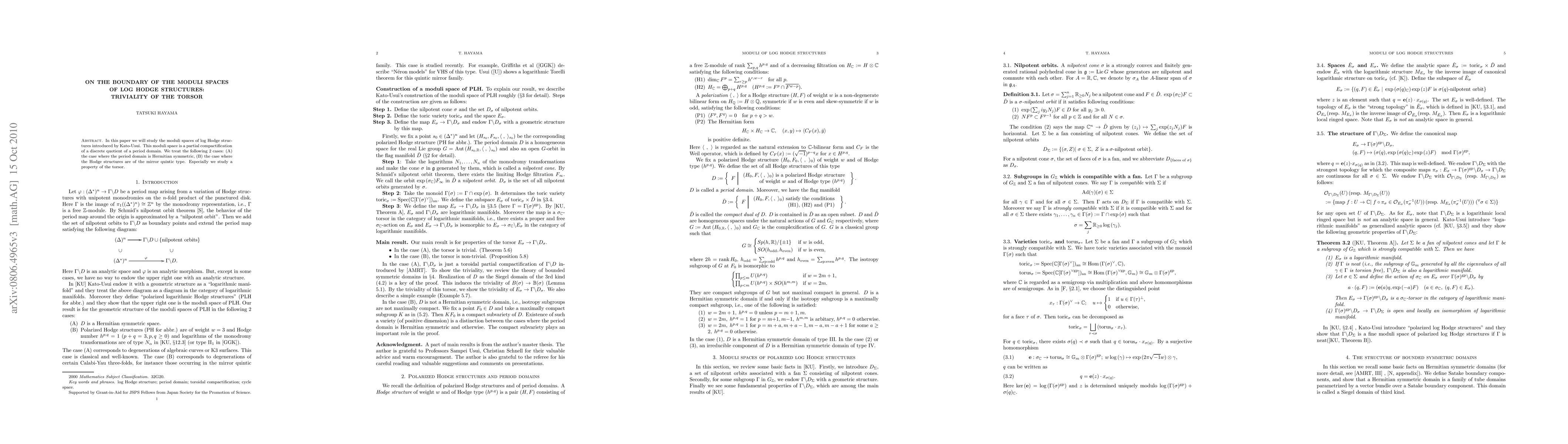This paper investigates the moduli spaces of log Hodge structures, focusing on their boundary behavior and the triviality of a specific torsor. It examines two cases: Hermitian symmetric period domains and mirror quintic Hodge structures.