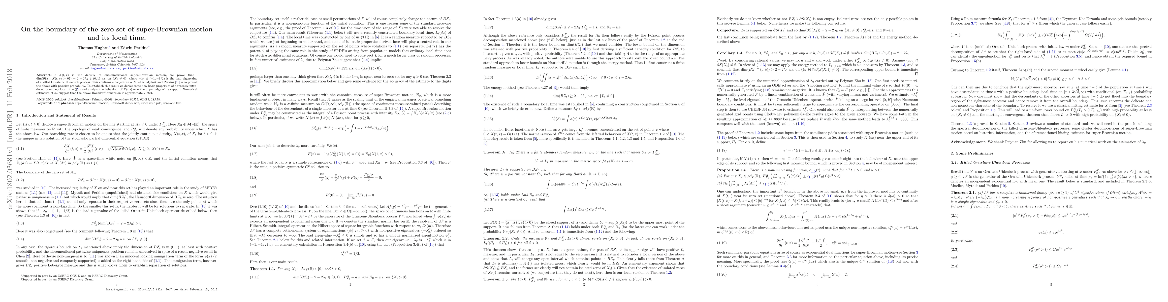 If $X(t,x)$ is the density of one-dimensional super-Brownian motion, we prove that $\text{dim}(\partial\{x:X(t,x)>0\})=2-2\lambda_0\in(0,1)$ a.s. on $\{X_t\neq 0\}$, where $-\lambda_0\in(-1,-1/2)$ is the lead eigenvalue of a killed Ornstein-Uhlenbeck process. This confirms a conjecture of Mueller, Mytnik and Perkins who proved the above with positive probability. To establish this result we derive some new basic properties of a recently introduced boundary local time and analyze the behaviour of $X(t,\cdot)$ near the upper edge of its support. Numerical estimates of $\lambda_0$ suggest that the above Hausdorff dimension is approximately $.224$.