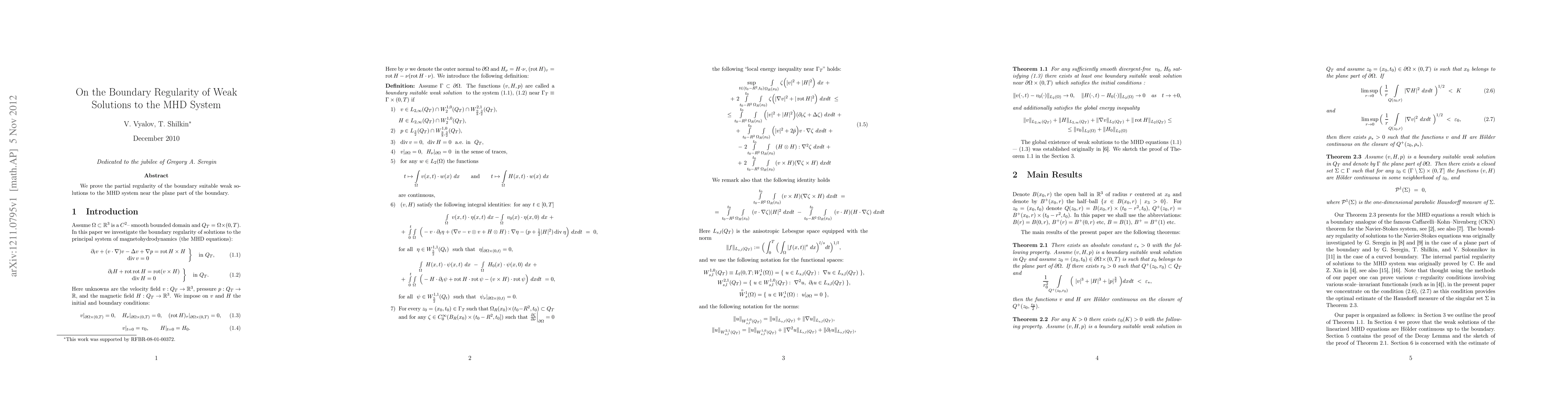 Summary: This paper establishes the partial regularity of weak solutions to the magnetohydrodynamic (MHD) system near the planar segments of the boundary, demonstrating their boundary regularity.
