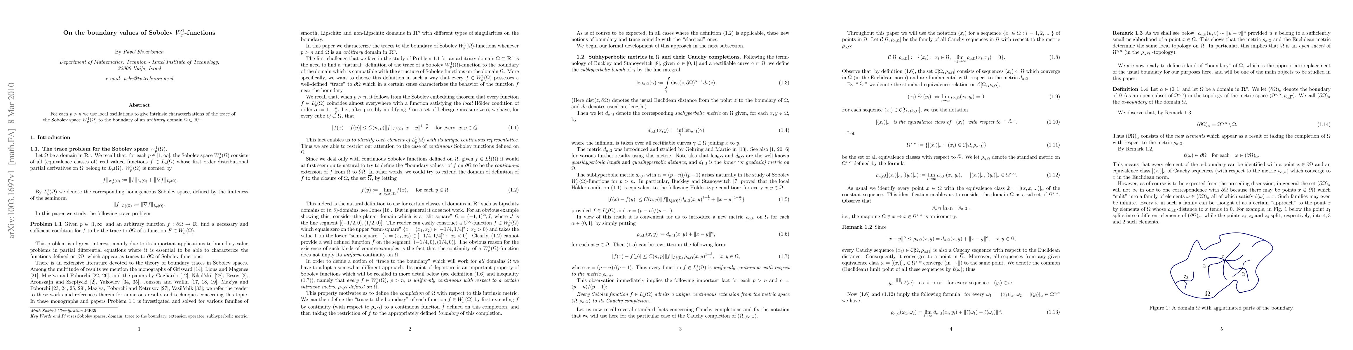 For each $p>n$ we use local oscillations to give intrinsic characterizations of the trace of the Sobolev space $W^1_p(\Omega)$ to the boundary of an arbitrary domain $\Omega\subset R^n$.