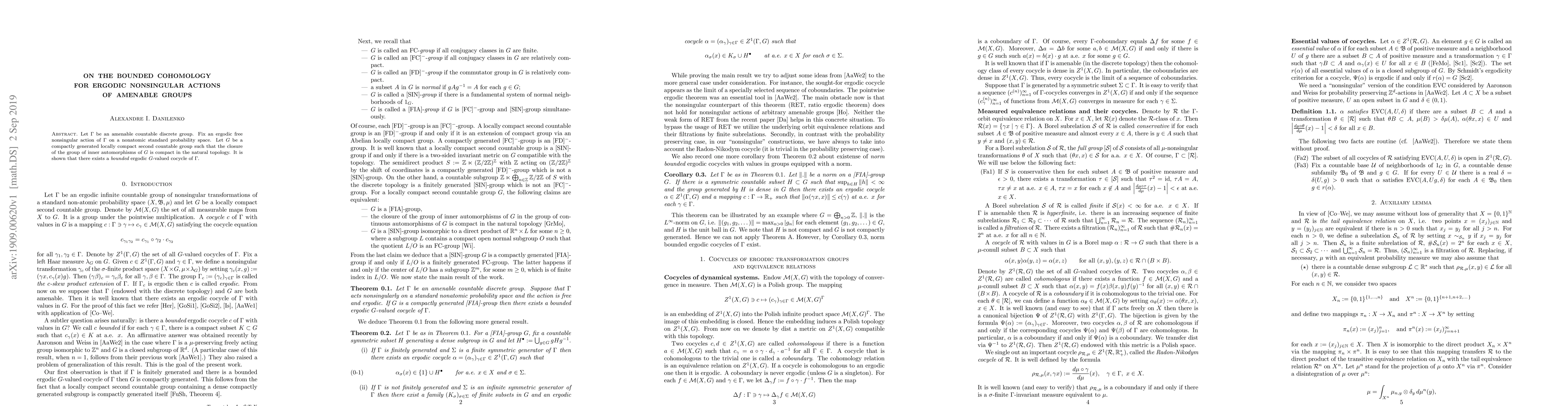 Let $\Gamma$ be an amenable countable discrete group. Fix an ergodic free nonsingular action of $\Gamma$ on a nonatomic standard probability space. Let $G$ be a compactly generated locally compact second countable group such that the closure of the group of inner automorphisms of $G$ is compact in the natural topology. It is shown that there exists a {\it bounded} ergodic $G$-valued cocycle of $\Gamma$.