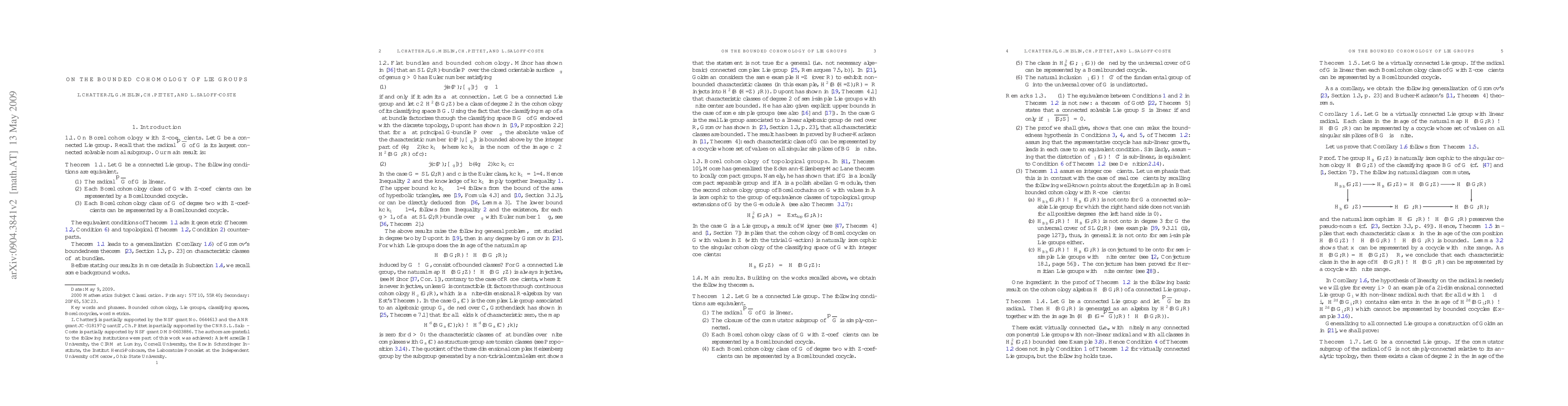 Research finds that integral Borel cohomology classes of connected Lie groups can be represented by bounded cocycles if the group's radical is linear, generalizing a previous theorem on flat bundles.