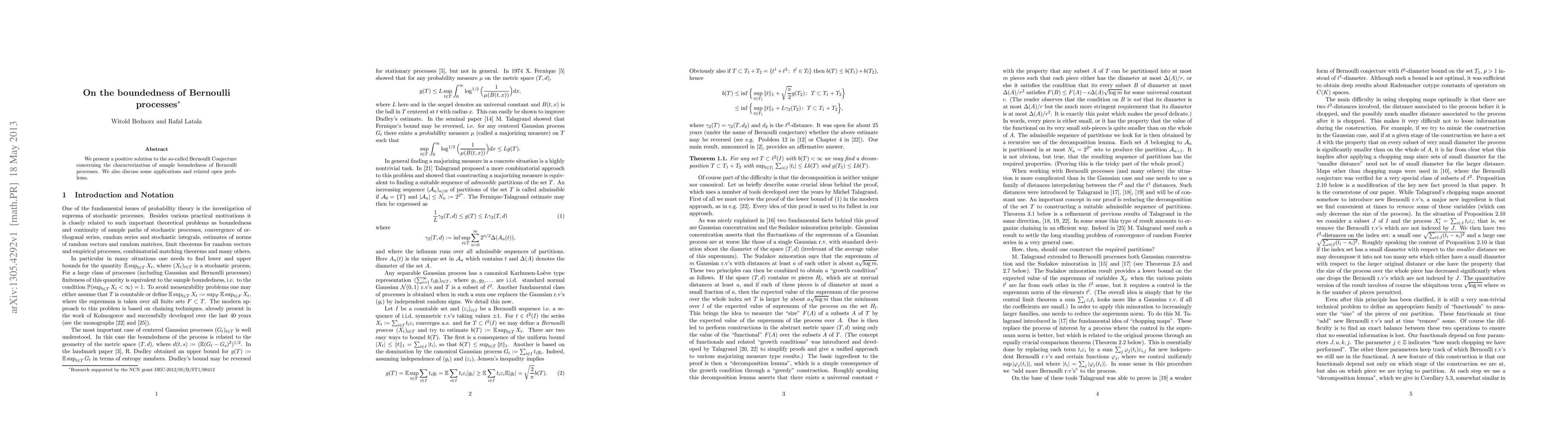 We present a positive solution to the so-called Bernoulli Conjecture concerning the characterization of sample boundedness of Bernoulli processes. We also discuss some applications and related open problems.