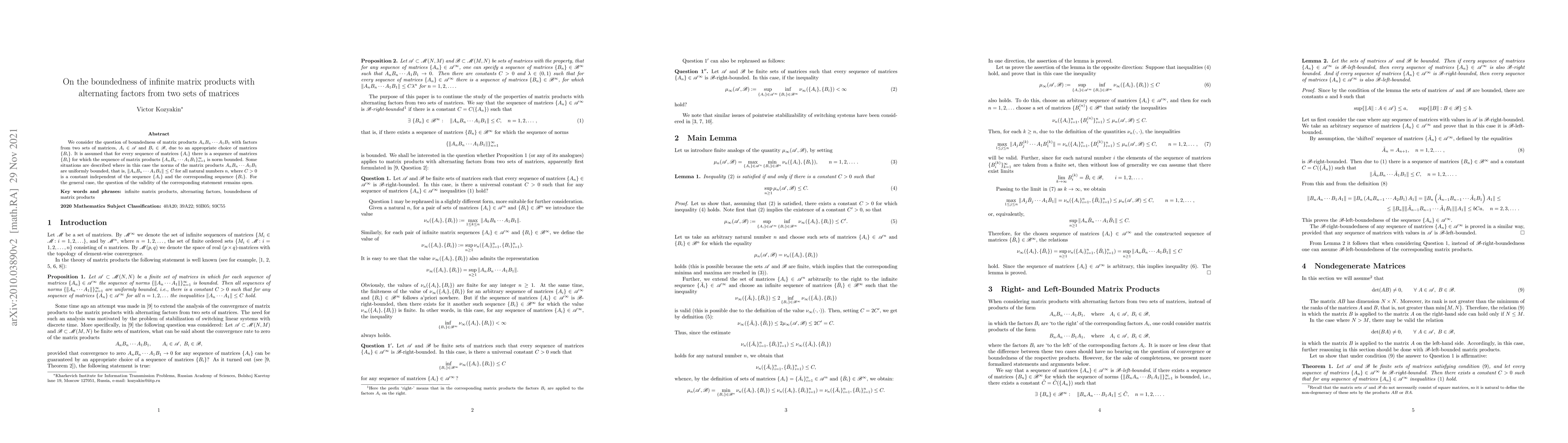 The paper investigates whether infinite matrix products with alternating factors from two sets can achieve bounded norms, either uniformly or non-uniformly. It finds that some situations lead to uniform boundability, but the general case remains open.