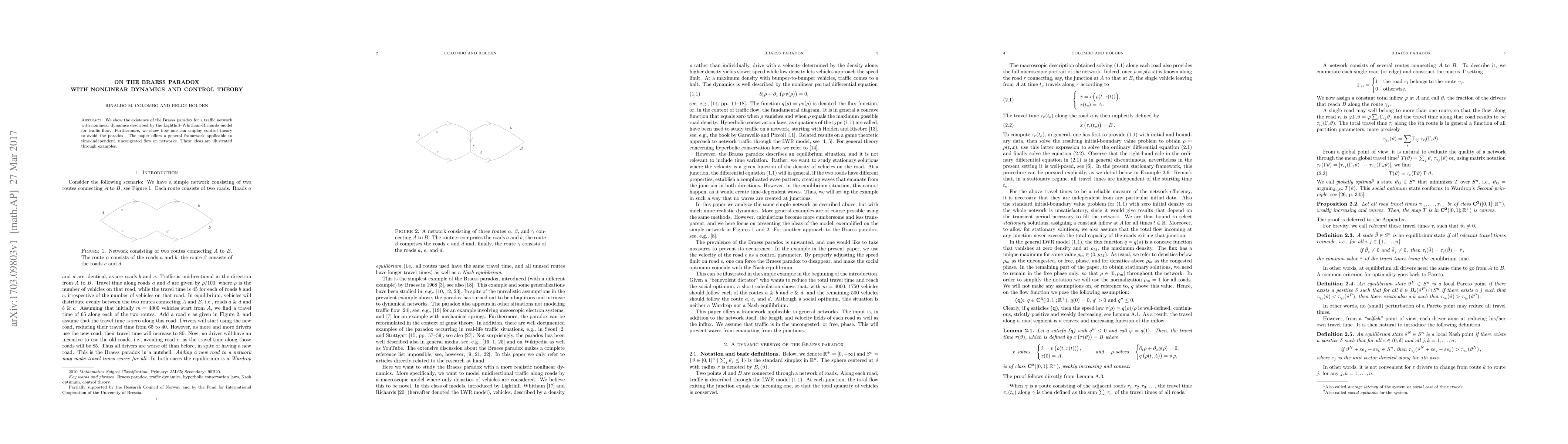 Researchers demonstrate the existence of the Braess paradox in traffic networks with nonlinear dynamics, but show that control theory can mitigate it. They provide a general framework for avoiding the paradox on time-independent, uncongested flow networks.