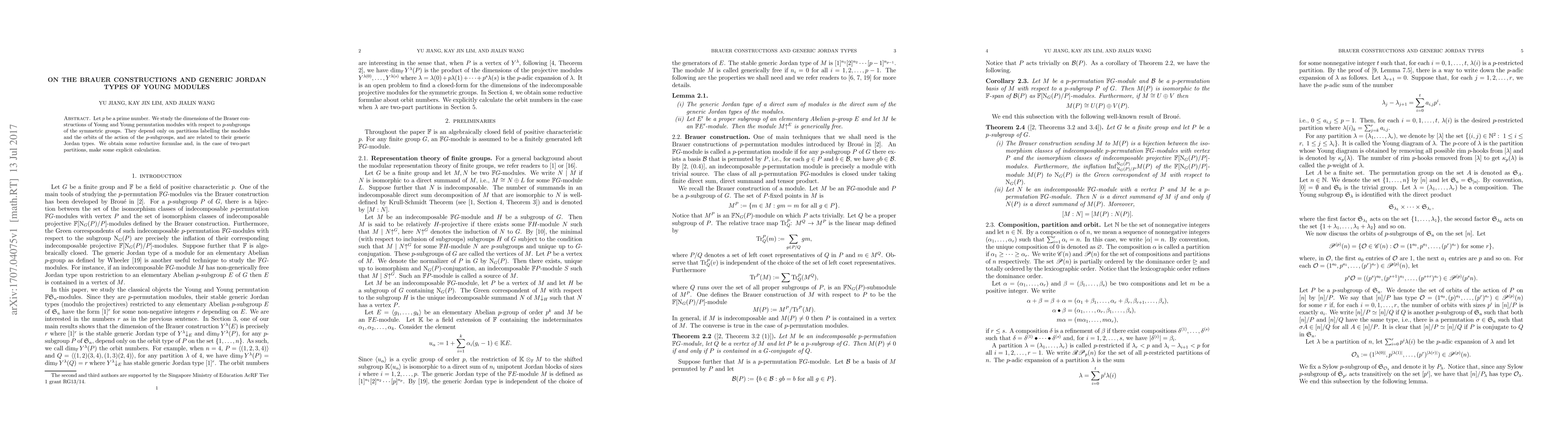 This paper explores the dimensions of Brauer constructions for Young and Young permutation modules concerning p-subgroups of symmetric groups, revealing they depend solely on module-labeling partitions and subgroup action orbits, and connects these to generic Jordan types. Explicit calculations are provided for two-part partitions.