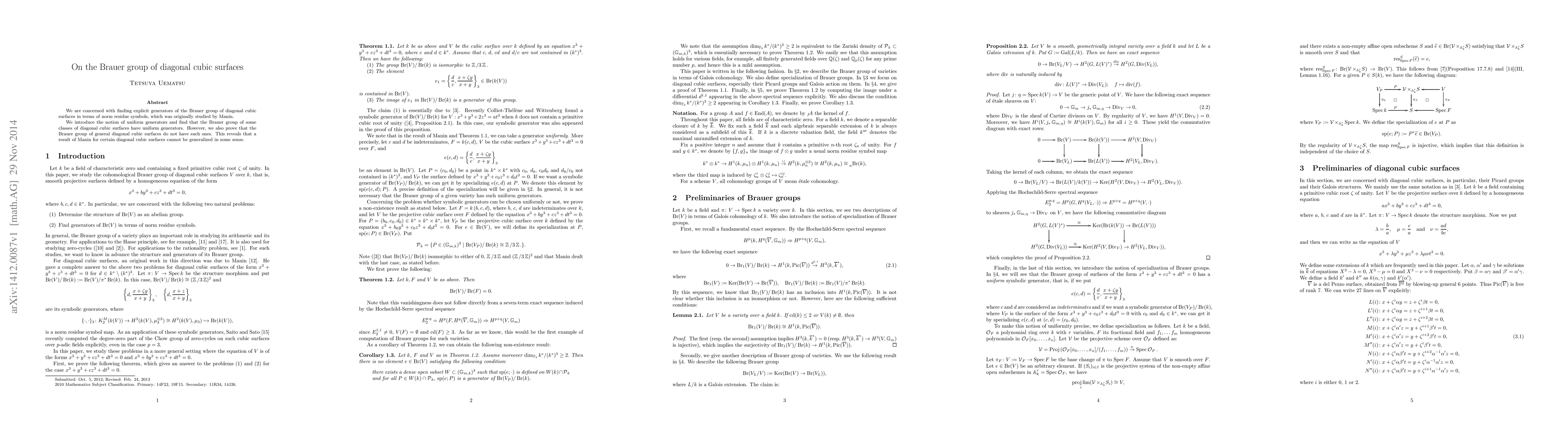 This research identifies explicit generators of the Brauer group for diagonal cubic surfaces using norm residue symbols, showing uniform generators exist for some classes but not for all. It demonstrates that Manin's result for specific cases cannot be universally applied.