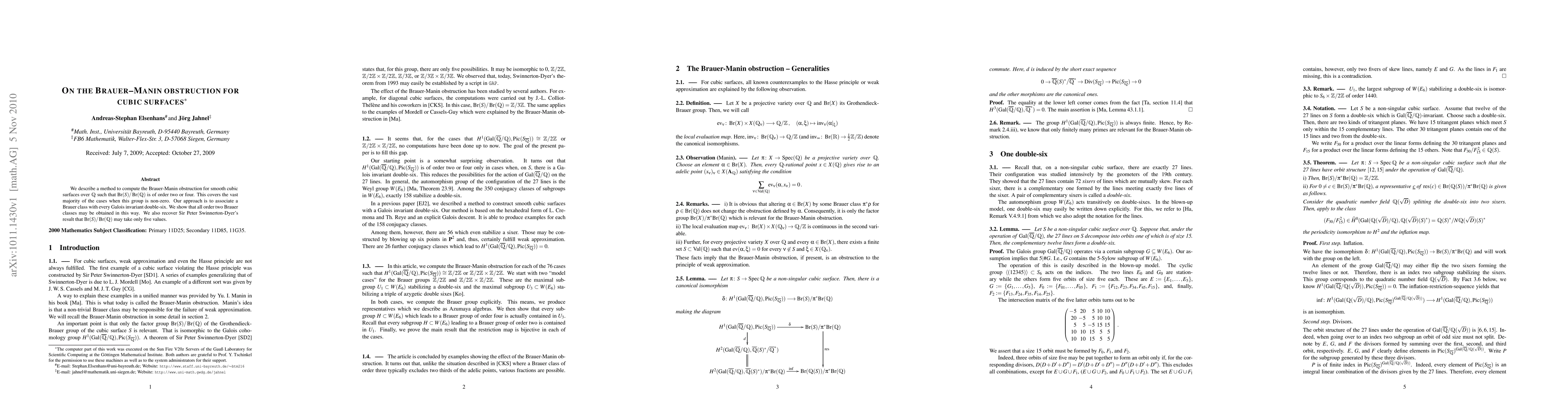 Summary: The paper proposes a method to calculate the Brauer-Manin obstruction for smooth cubic surfaces over $\bbQ$, showing that most non-zero cases can be handled by associating a Brauer class with every Galois invariant double-six, and confirming Swinnerton-Dyer's result on the possible values of $\Br(S)/\Br(\bbQ)$.