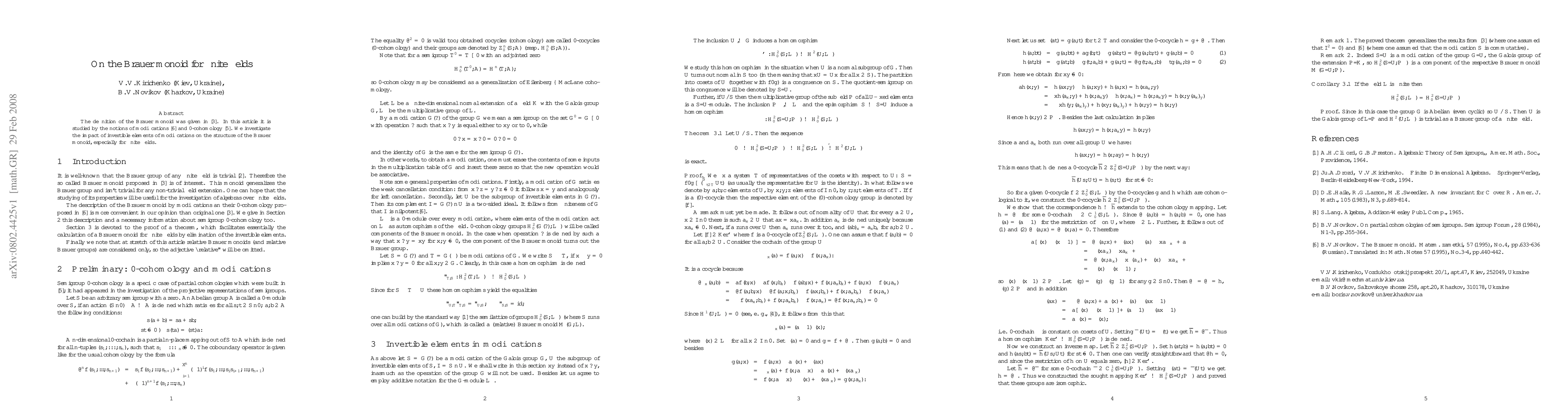 The Brauer monoid is studied by the notion of 0-cohomology. We investigate the impact of invertible elements of modifications on the structure of the Brauer monoid, especially for finite fields.