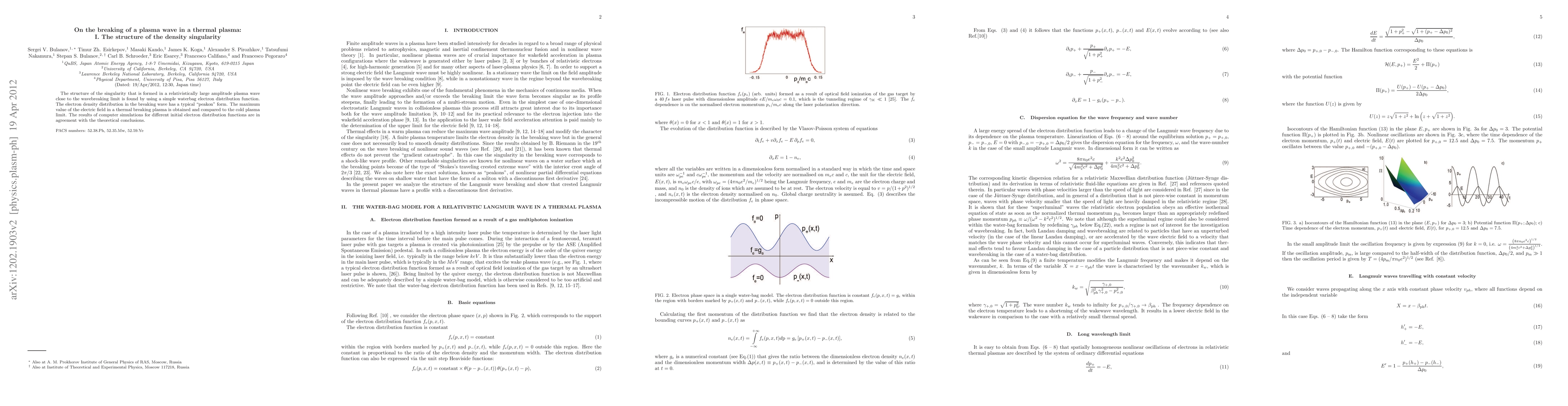 This paper investigates the structure of the density singularity in a relativistically large amplitude plasma wave near its breaking point, revealing a "peakon" form in the electron density distribution. It also determines the maximum electric field in a thermal breaking plasma and compares it to the cold plasma limit, with simulation results corroborating theoretical findings.