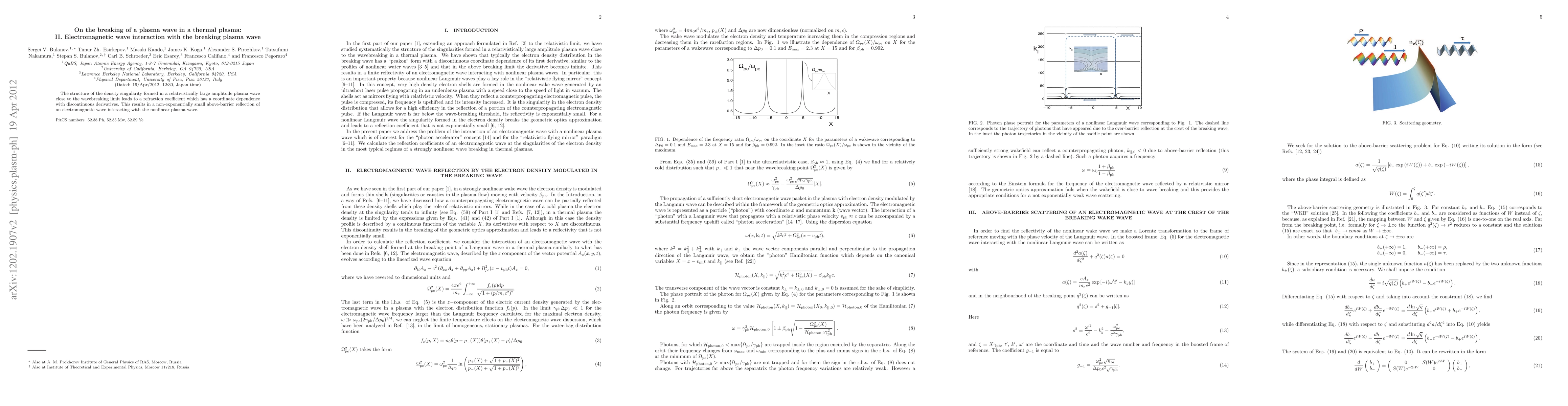Summary: The study investigates the interaction of an electromagnetic wave with a breaking plasma wave near the wavebreaking limit, revealing a density singularity that causes a refraction coefficient with discontinuous derivatives, leading to a non-exponentially small above-barrier reflection.