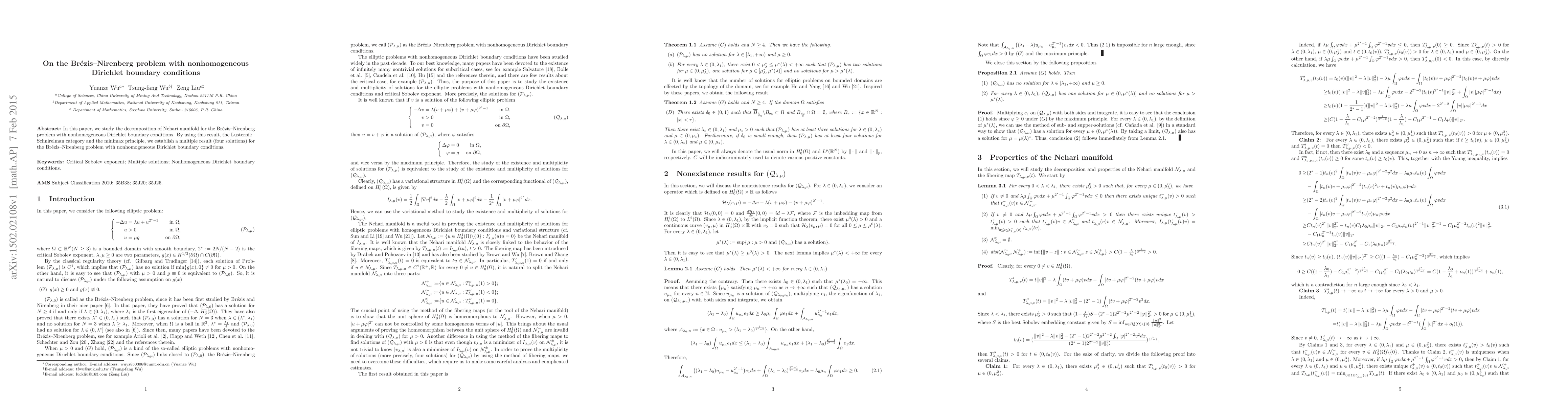 This paper decomposes the Nehari manifold for the Brezis-Nirenberg problem under nonhomogeneous Dirichlet boundary conditions. Utilizing the Lusternik-Schnirelman category and the minimax principle, it establishes the existence of four solutions for this problem.
