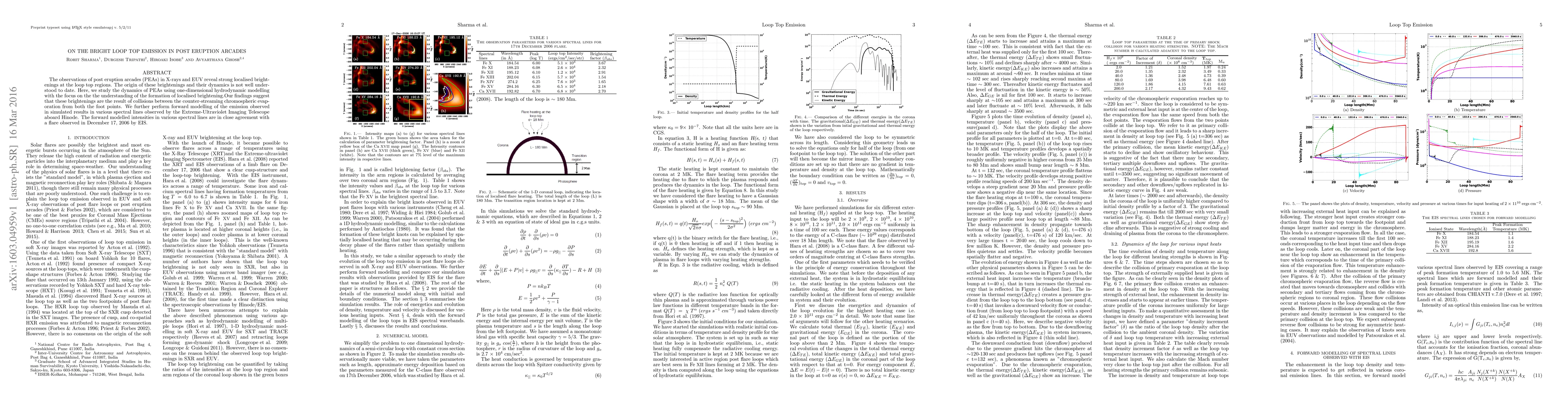 Researchers study bright loop top emissions in post-eruption arcades using hydrodynamic modeling, finding that collisions between chromospheric evaporation from both footpoints create the brightenings.