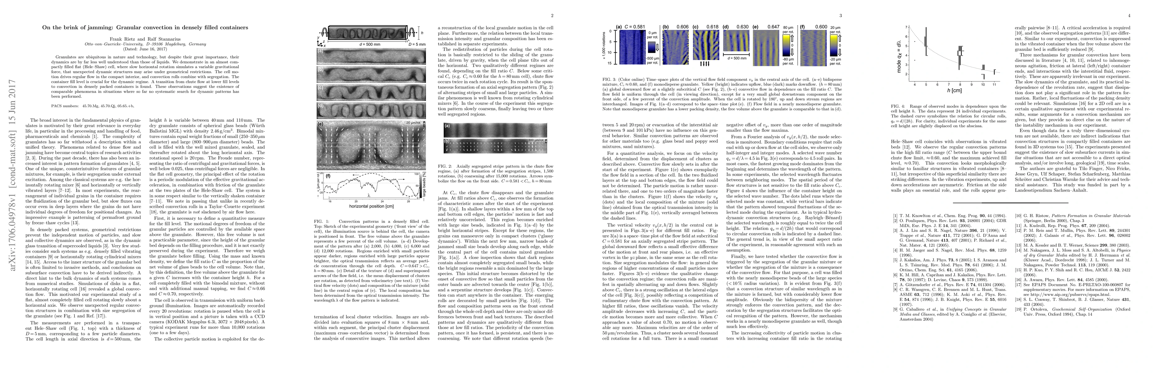 This paper investigates granular convection in nearly fully filled containers under slow horizontal rotation, revealing unexpected dynamic structures and transitions from chute flow to convection as fill levels increase. The study highlights the importance of geometrical constraints in driving regular flow and segregation patterns.