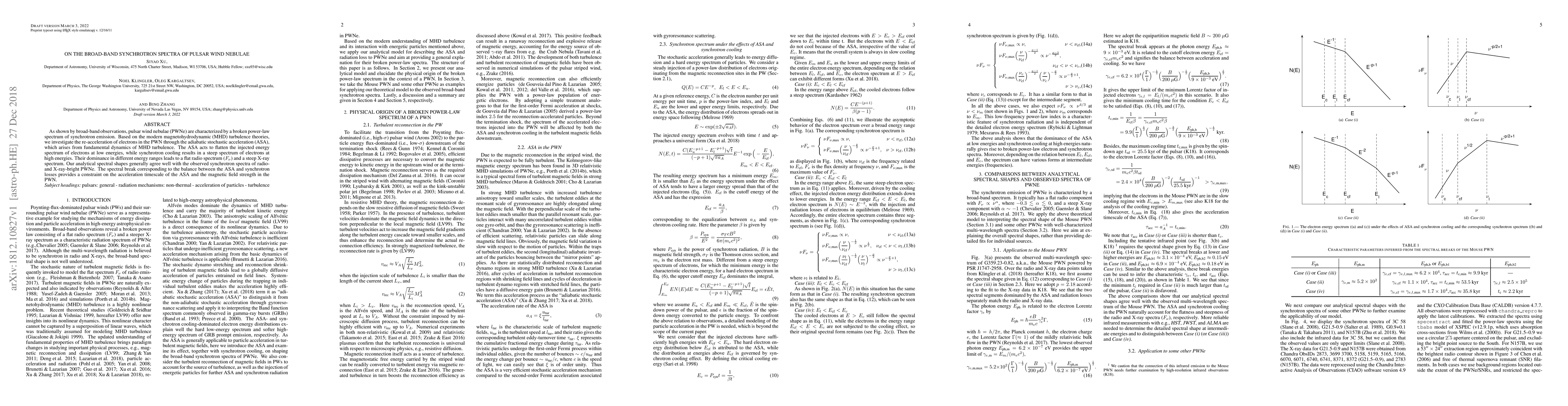 This paper investigates the broad-band synchrotron spectra of pulsar wind nebulae (PWNe), explaining the observed broken power-law spectrum through adiabatic stochastic acceleration (ASA) driven by magnetohydrodynamic (MHD) turbulence. The study finds that ASA flattens the low-energy electron spectrum, while synchrotron cooling steepens the high-energy spectrum, matching observed radio and X-ray spectra.