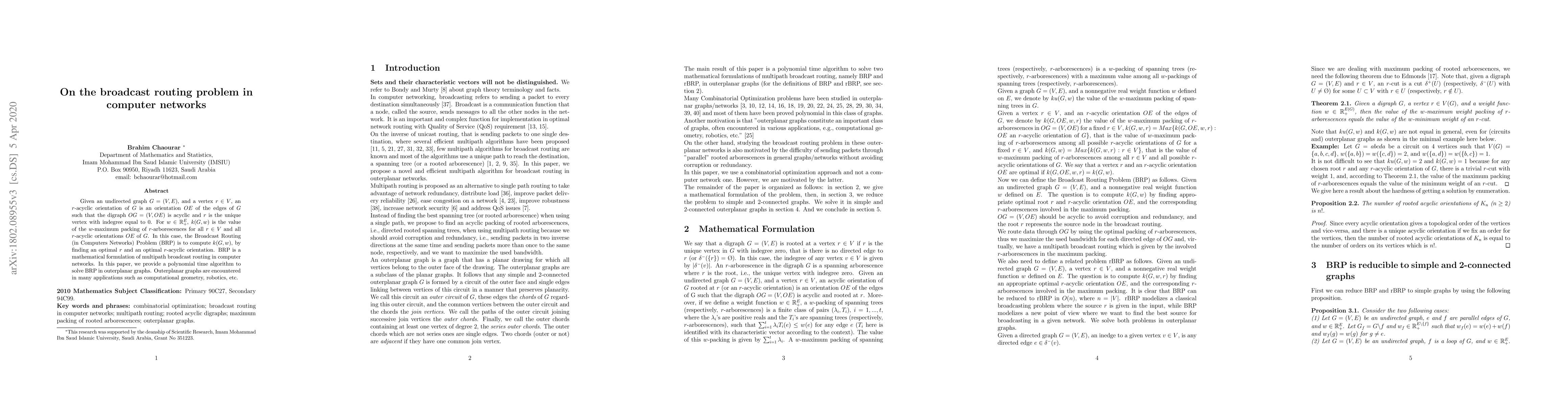 Researchers developed a polynomial-time algorithm to solve the Broadcast Routing Problem in computer networks for outerplanar graphs, enabling efficient multipath broadcast routing in various applications.