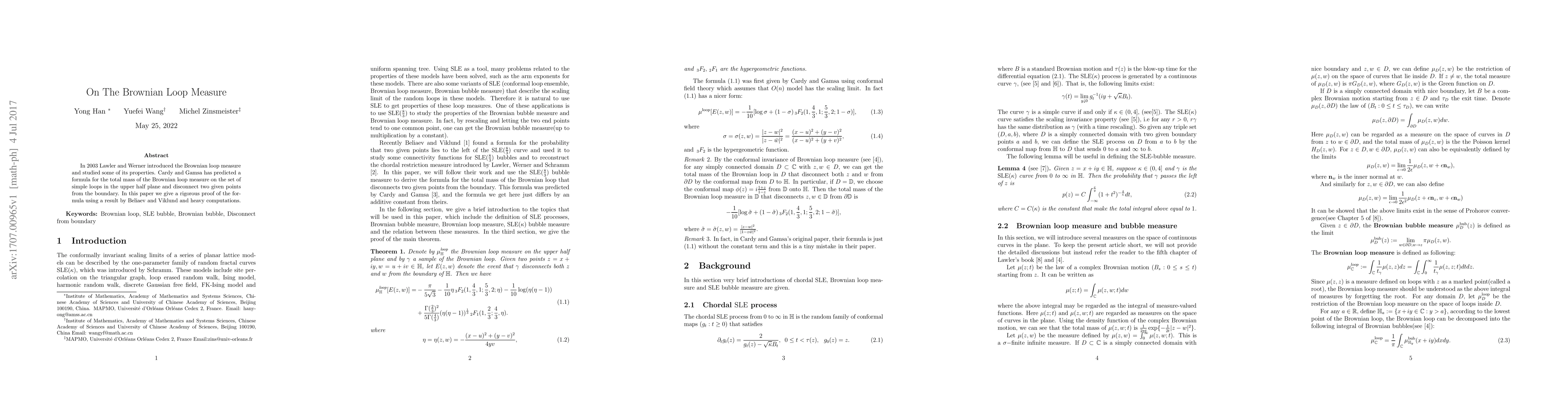 In 2003 Lawler and Werner introduced the Brownian loop measure and studied some of its properties. Cardy and Gamsa has predicted a formula for the total mass of the Brownian loop measure on the set of simple loops in the upper half plane and disconnect two given points from the boundary. In this paper we give a rigorous proof of the formula using a result by Beliaev and Viklund and heavy computations.