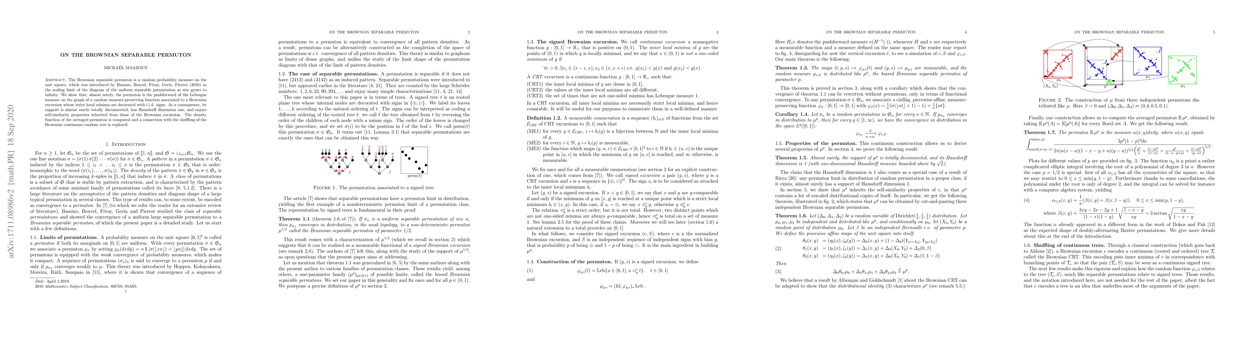 The Brownian separable permuton is shown to be the pushforward of the Lebesgue measure on the graph of a random function linked to a Brownian excursion. Its support is almost surely totally disconnected, with Hausdorff dimension one, and it exhibits self-similarity properties derived from the Brownian excursion.