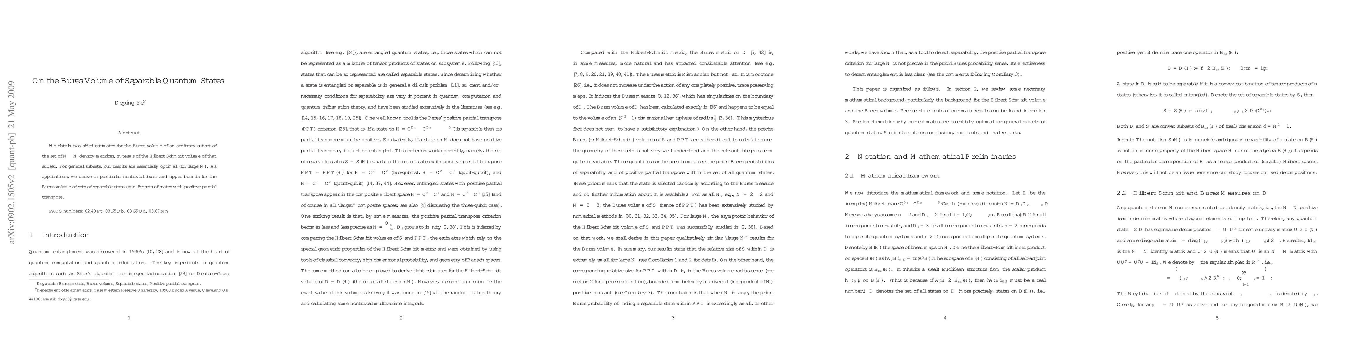 We obtain two sided estimates for the Bures volume of an arbitrary subset of the set of $N\times N$ density matrices, in terms of the Hilbert-Schmidt volume of that subset. For general subsets, our results are essentially optimal (for large $N$). As applications, we derive in particular nontrivial lower and upper bounds for the Bures volume of sets of separable states and for sets of states with positive partial transpose. PACS numbers: 02.40.Ft, 03.65.Db, 03.65.Ud, 03.67.Mn