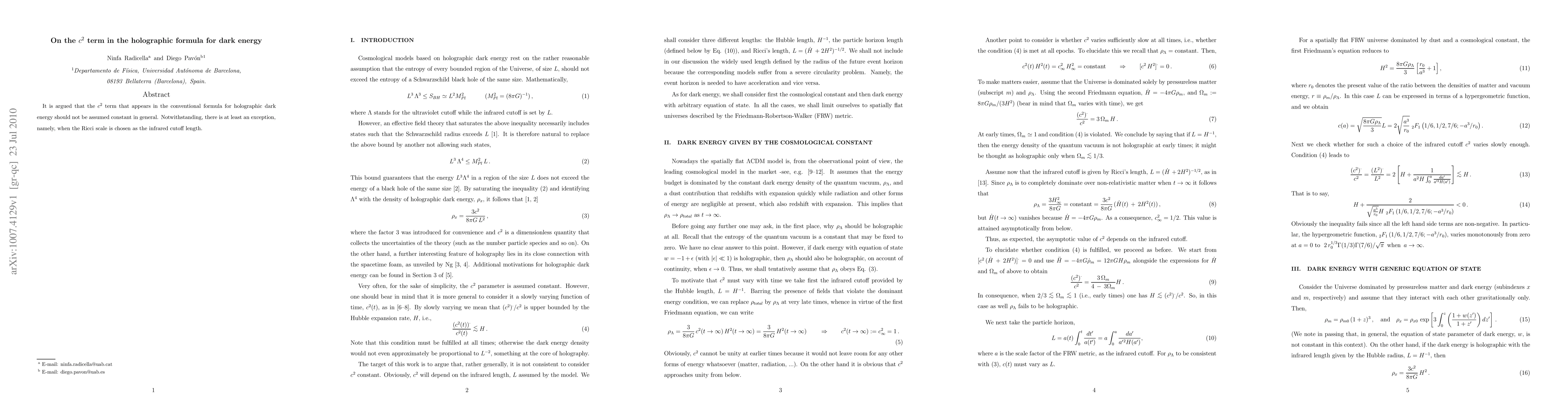 It is argued that the $c^{2}$ term that appears in the conventional formula for holographic dark energy should not be assumed constant in general. Notwithstanding, there is at least an exception, namely, when the Ricci scale is chosen as the infrared cutoff length.