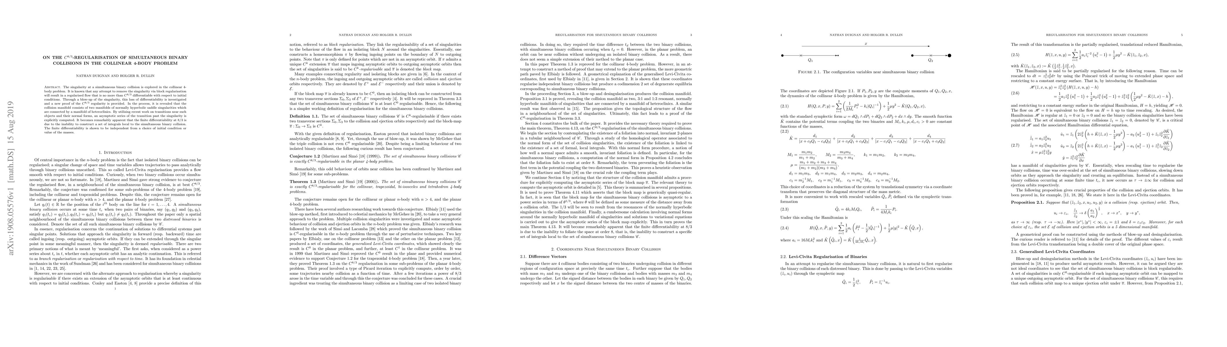 The singularity at a simultaneous binary collision is explored in the collinear 4-body problem. It is known that any attempt to remove the singularity via block regularisation will result in a regularised flow that is no more than $ C^{8/3} $ differentiable with respect to initial conditions. Through a blow-up of the singularity, this loss of differentiability is investigated and a new proof of the $ C^{8/3} $ regularity is provided. In the process, it is revealed that the collision manifold consists of two manifolds of normally hyperbolic saddle singularities which are connected by a manifold of heteroclinics. By utilising recent work on transitions near such objects and their normal forms, an asymptotic series of the transition past the singularity is explicitly computed. It becomes remarkably apparent that the finite differentiability at $ 8/3 $ is due to the inability to construct a set of integrals local to the simultaneous binary collision. The finite differentiability is shown to be independent from a choice of initial condition or value of the masses.