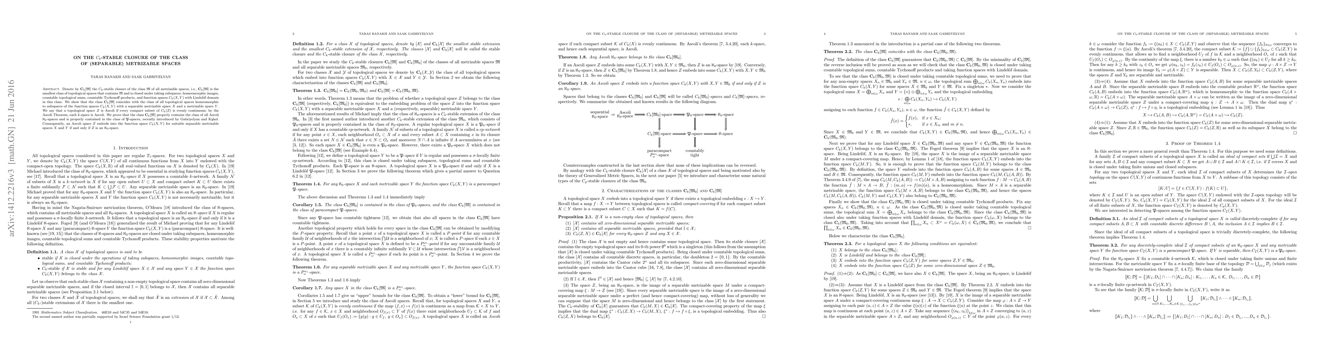 This paper explores the $C_k$-stable closure of separable metrizable spaces, showing it coincides with spaces homeomorphic to subspaces of function spaces $C_k(X,Y)$. It demonstrates that this class properly contains Ascoli $\aleph_0$-spaces and is contained within $\mathfrak P$-spaces, concluding that Ascoli spaces embed into function spaces if and only if they are $\aleph_0$-spaces.