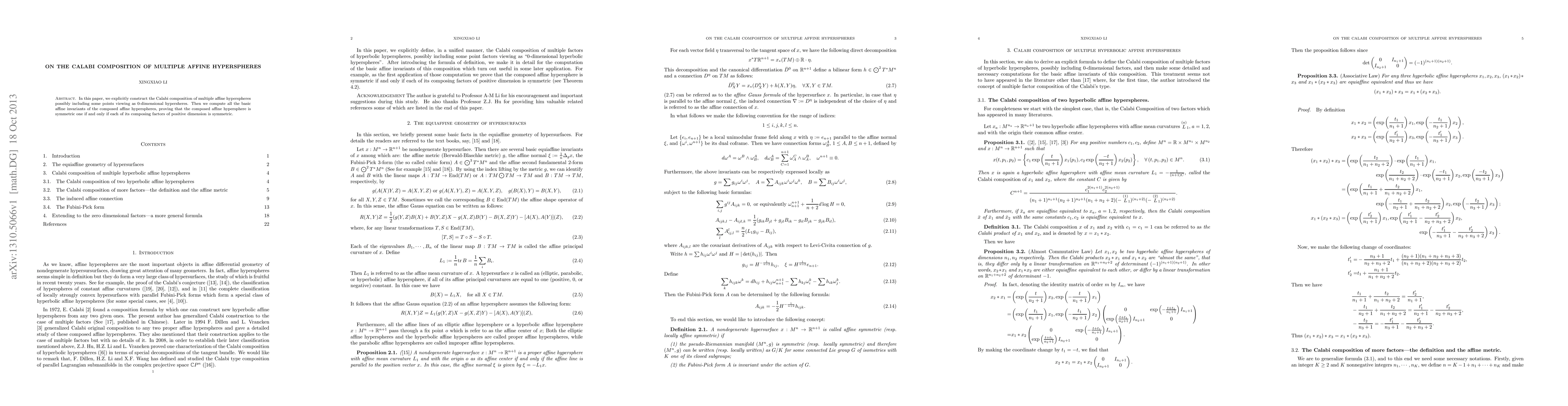 This paper constructs the Calabi composition of multiple affine hyperspheres, including 0-dimensional hyperspheres, and computes their affine invariants, proving that the composed hypersphere is symmetric if each composing factor of positive dimension is symmetric.