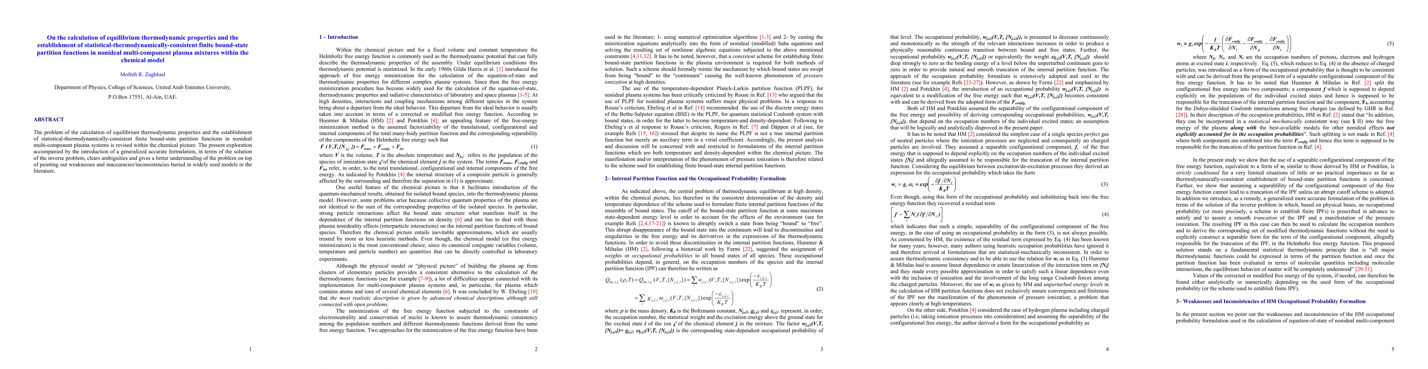 The problem of the calculation of equilibrium thermodynamic properties and the establishment of statistical-thermodynamically-consistent finite bound-state partition functions in nonideal multi-component plasma systems is revised within the chemical picture. The present exploration accompanied by the introduction of a generalized accurate formulation, in terms of the solution of the inverse problem, clears ambiguities and gives a better understanding of the problem on top of pointing out weaknesses and inaccuracies/inconsistencies buried in widely used models in the literature.