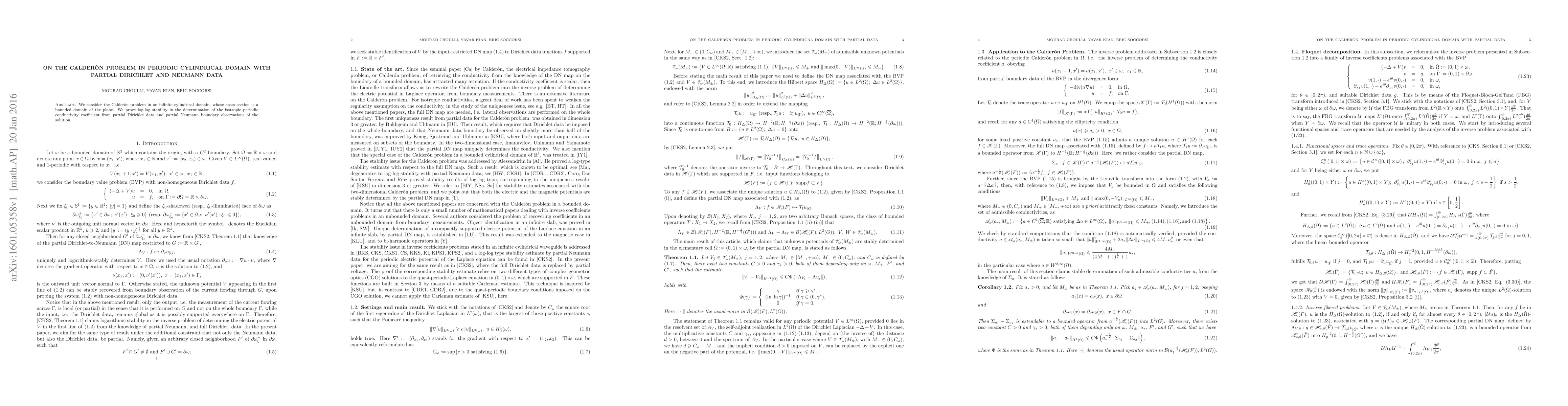 Summary: This paper addresses the Calder\`on problem in an infinite cylindrical domain with periodic cross-section, proving log-log stability in determining the conductivity coefficient using partial Dirichlet and Neumann boundary data.