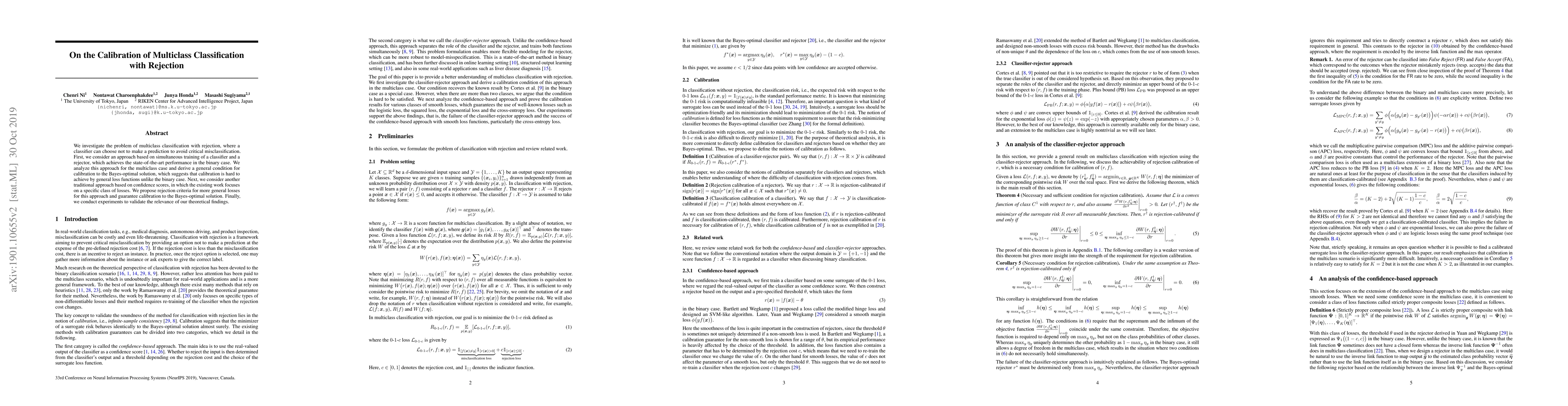 This paper explores multiclass classification with rejection, proposing methods to improve calibration and avoid critical misclassifications. It introduces a simultaneous training approach for rejectors and analyzes its general calibration conditions, then proposes a new rejection criteria for confidence score-based methods to ensure calibration to the Bayes-optimal solution, validated through experiments.