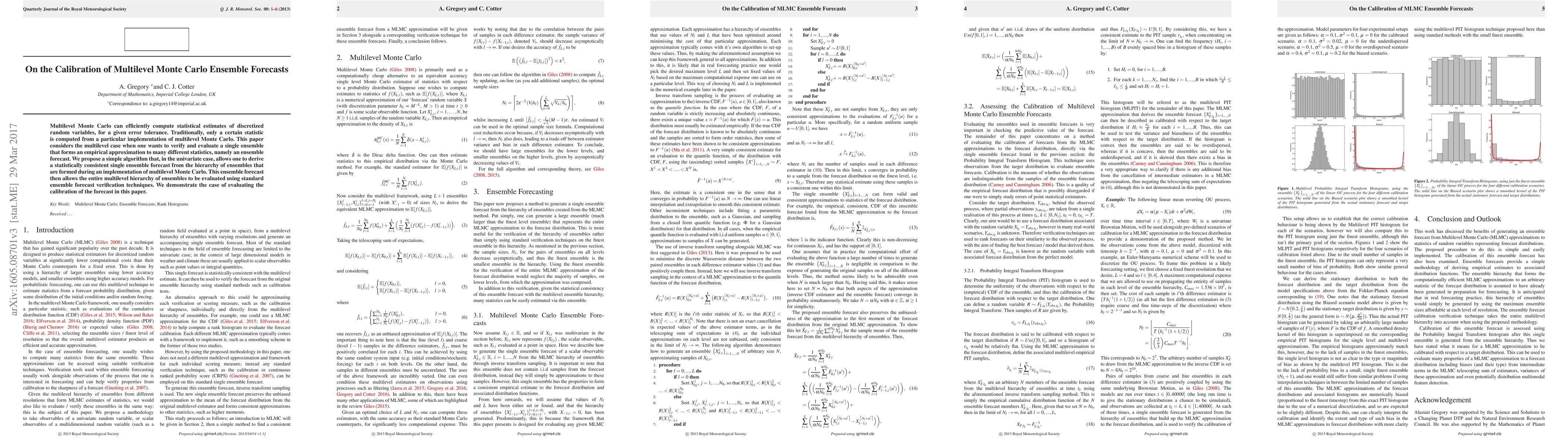 The proposed procedure involves generating an ensemble forecast from Multilevel Monte Carlo (MLMC) approximations of statistics representing forecast distributions.