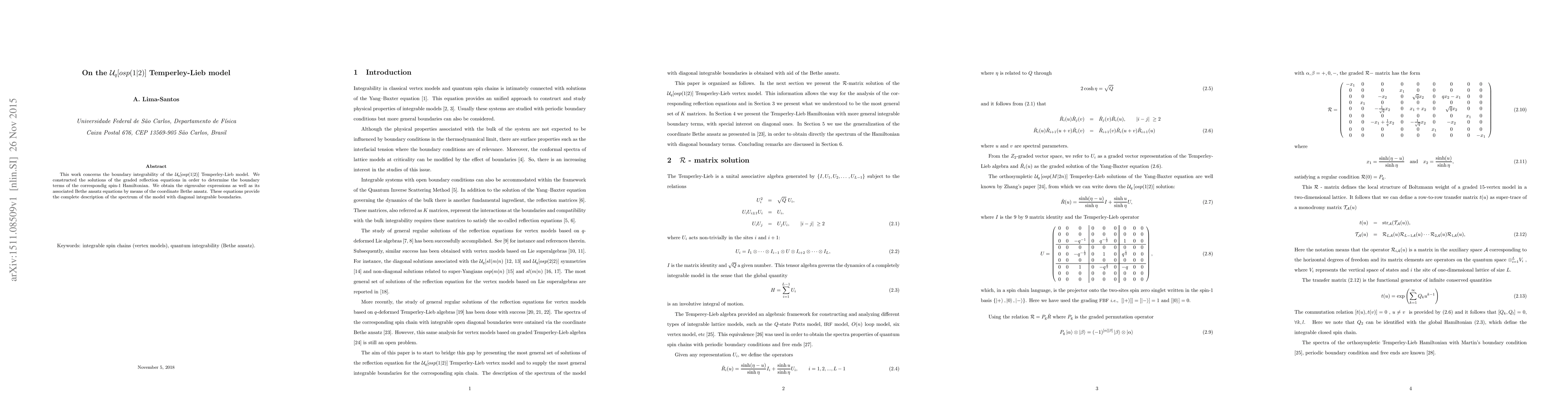 This work concerns the boundary integrability of the ${\cal{U}}_{q}[osp(1|2)]$ Temperley-Lieb model. We constructed the solutions of the graded reflection equations in order to determine the boundary terms of the correspondig spin-1 Hamiltonian. We obtain the eigenvalue expressions as well as its associated Bethe ansatz equations by means of the coordinate Bethe ansatz. These equations provide the complete description of the spectrum of the model with diagonal integrable boundaries.