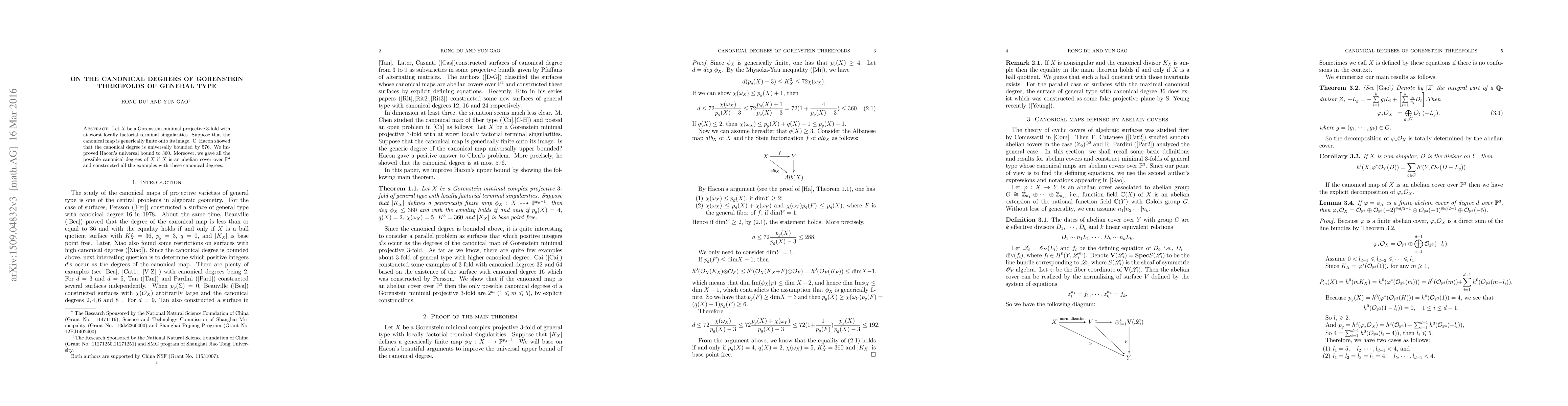 Let $X$ be a Gorenstein minimal projective $3$-fold with at worst locally factorial terminal singularities. Suppose that the canonical map is generically finite onto its image. C. Hacon showed that the canonical degree is universally bounded by $576$. We improved Hacon's universal bound to $360$. Moreover, we gave all the possible canonical degrees of $X$ if $X$ is an abelian cover over $\mathbb{P}^3$ and constructed all the examples with these canonical degrees.