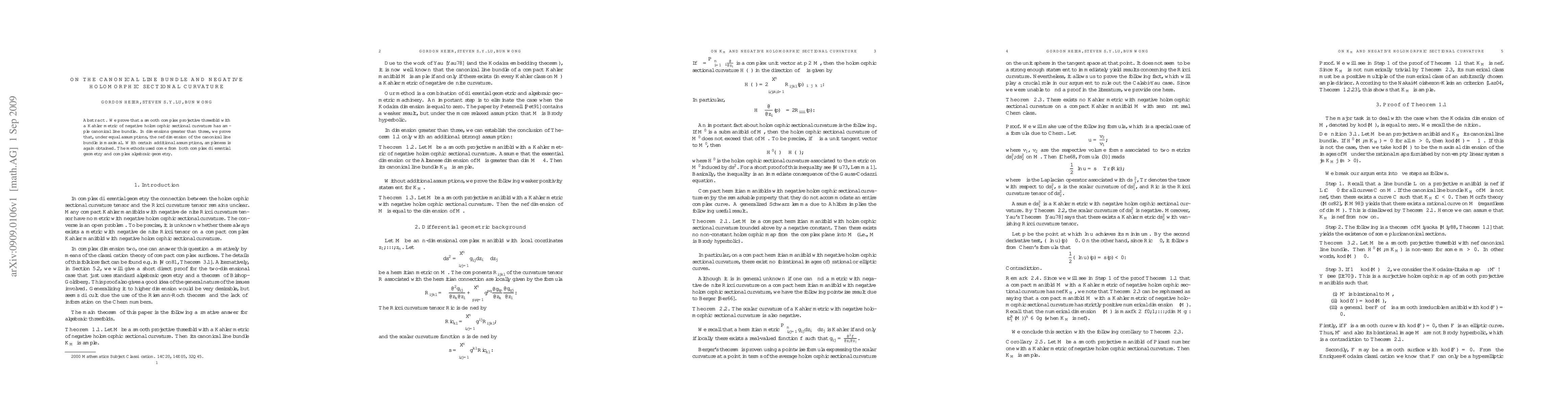 This paper proves that a Kähler metric on a smooth complex projective threefold with negative holomorphic sectional curvature implies the ampleness of the canonical line bundle. For dimensions greater than three, it shows that under the same conditions, the nef dimension of the canonical line bundle is maximal, with ampleness achievable under additional assumptions. The research combines techniques from complex differential geometry and algebraic geometry.