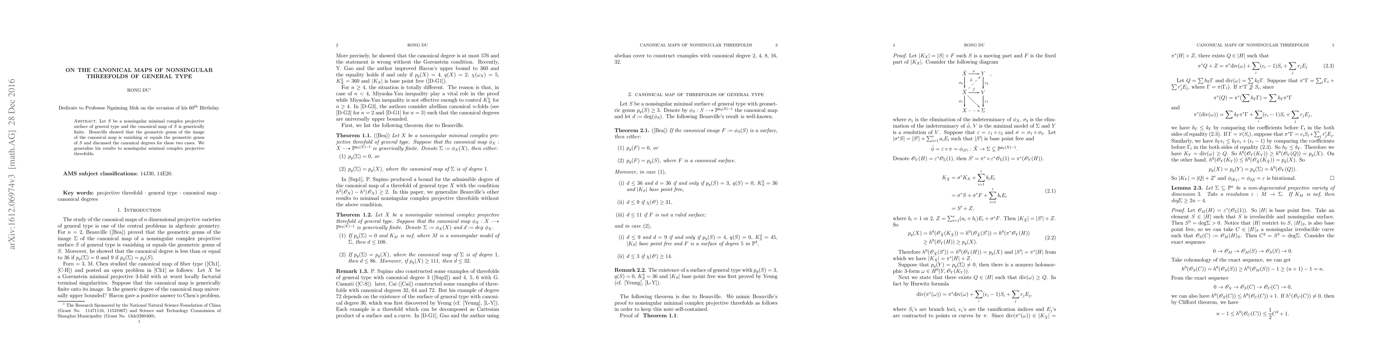 The paper presents a proof of generalized Beauville's theorems on canonical degrees for nonsingular minimal complex projective threefolds, utilizing abelian covers and minimal model theory.