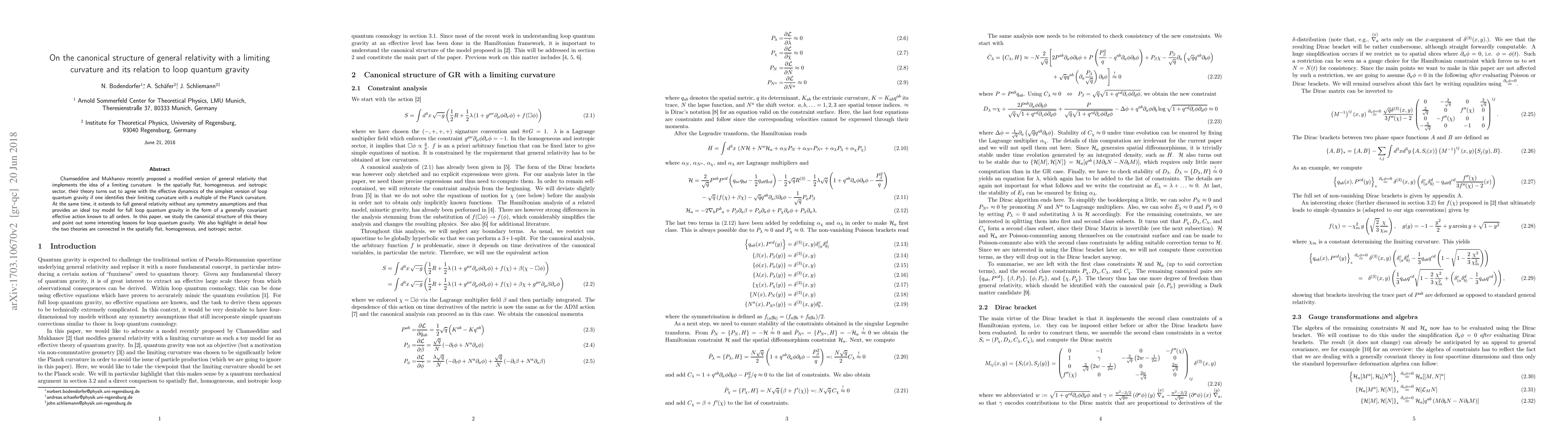Chamseddine and Mukhanov recently proposed a modified version of general relativity that implements the idea of a limiting curvature. In the spatially flat, homogeneous, and isotropic sector, their theory turns out to agree with the effective dynamics of the simplest version of loop quantum gravity if one identifies their limiting curvature with a multiple of the Planck curvature. At the same time, it extends to full general relativity without any symmetry assumptions and thus provides an ideal toy model for full loop quantum gravity in the form of a generally covariant effective action known to all orders. In this paper, we study the canonical structure of this theory and point out some interesting lessons for loop quantum gravity. We also highlight in detail how the two theories are connected in the spatially flat, homogeneous, and isotropic sector.