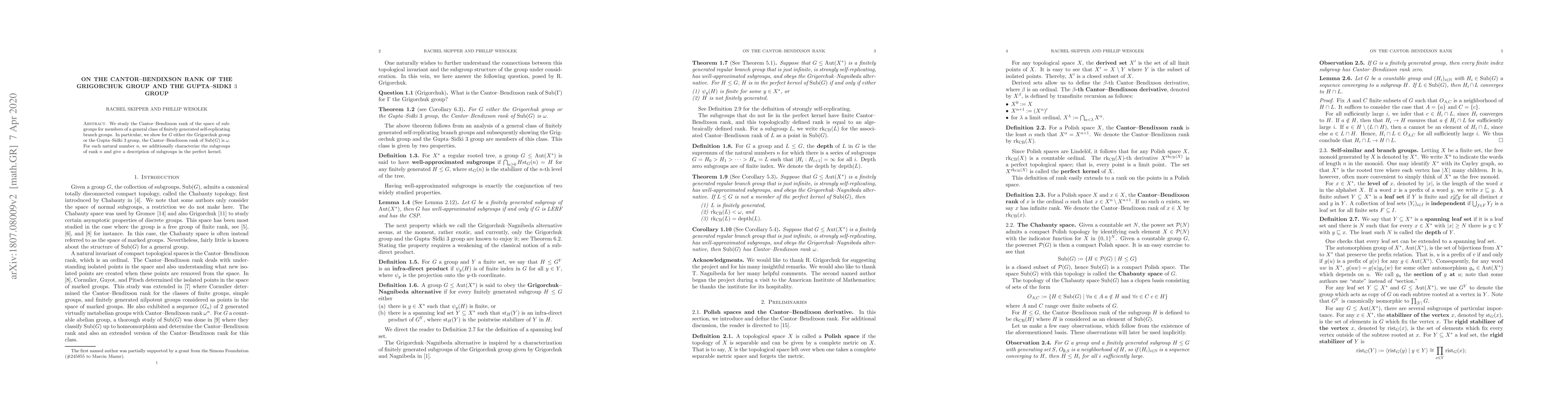 This paper investigates the Cantor-Bendixson rank of the subgroup space for the Grigorchuk and Gupta-Sidki $3$ groups, showing their ranks are $\omega$. It also characterizes subgroups of specific ranks and describes subgroups within the perfect kernel.