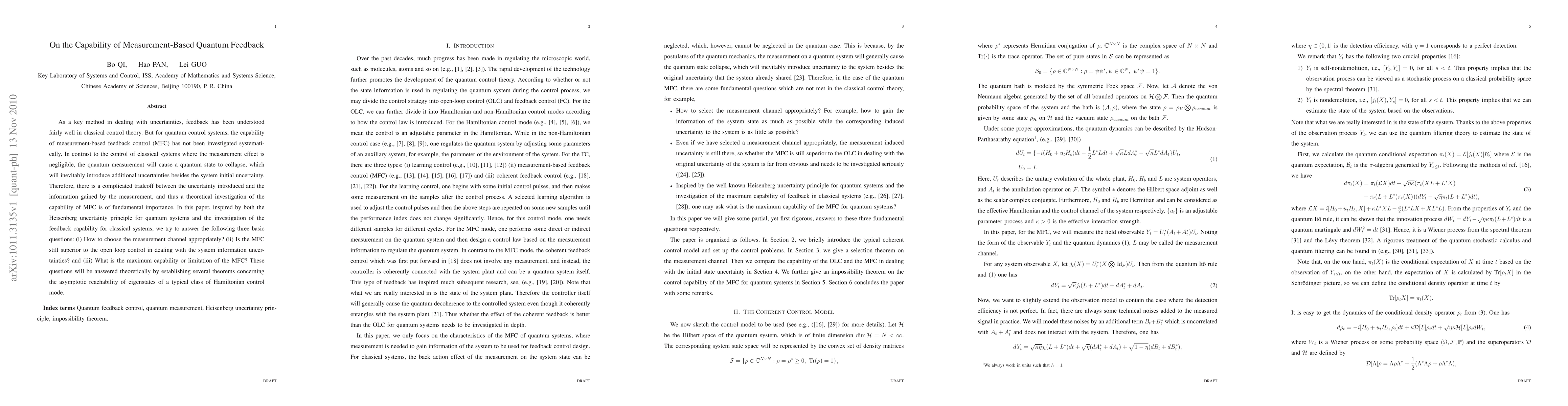 As a key method in dealing with uncertainties, feedback has been understood fairly well in classical control theory. But for quantum control systems, the capability of measurement-based feedback control (MFC) has not been investigated systematically. In contrast to the control of classical systems where the measurement effect is negligible, the quantum measurement will cause a quantum state to collapse, which will inevitably introduce additional uncertainties besides the system initial uncertainty. Therefore, there is a complicated tradeoff between the uncertainty introduced and the information gained by the measurement, and thus a theoretical investigation of the capability of MFC is of fundamental importance. In this paper, inspired by both the Heisenberg uncertainty principle for quantum systems and the investigation of the feedback capability for classical systems, we try to answer the following three basic questions: (i) How to choose the measurement channel appropriately? (ii) Is the MFC still superior to the open loop control in dealing with the system information uncertainties? and (iii) What is the maximum capability or limitation of the MFC? These questions will be answered theoretically by establishing several theorems concerning the asymptotic reachability of eigenstates of a typical class of Hamiltonian control mode.