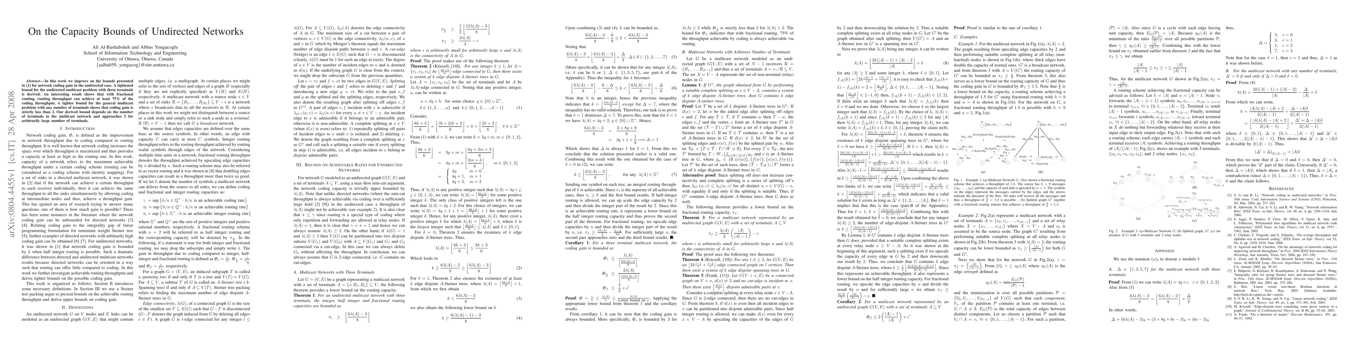 This paper enhances network coding bounds in undirected networks, demonstrating that fractional routing can reach 75% of coding throughput. A tighter bound for multicast with any terminals shows coding gain is strictly under 2, approaching 2 with more terminals.