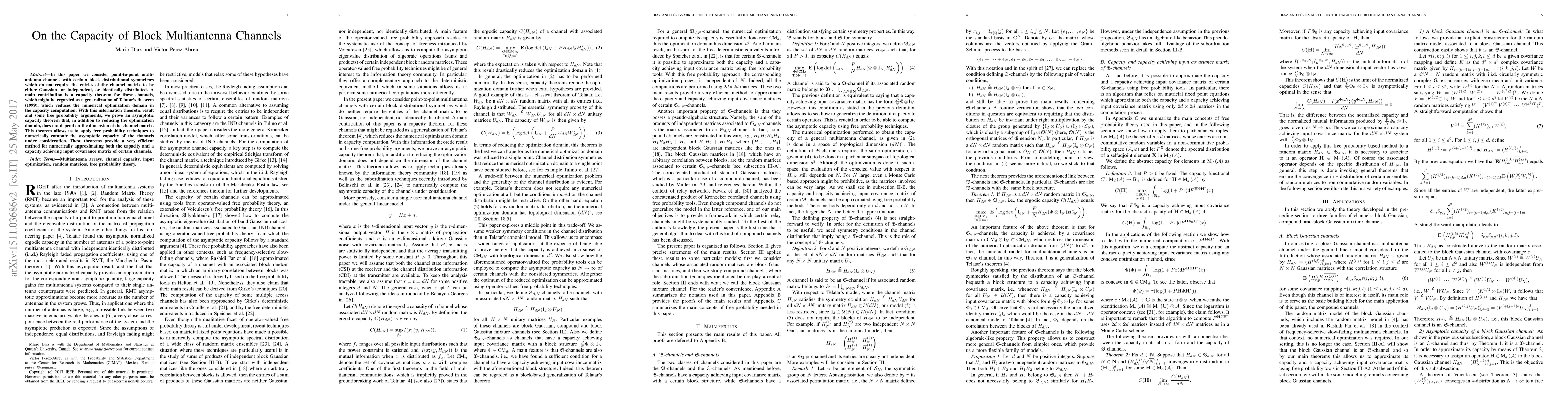 This paper generalizes Telatar's capacity theorem for multiantenna channels with block distributional symmetries, reducing the optimization domain and eliminating dependence on the channel matrix dimension. It employs free probability techniques to efficiently compute the asymptotic capacity.