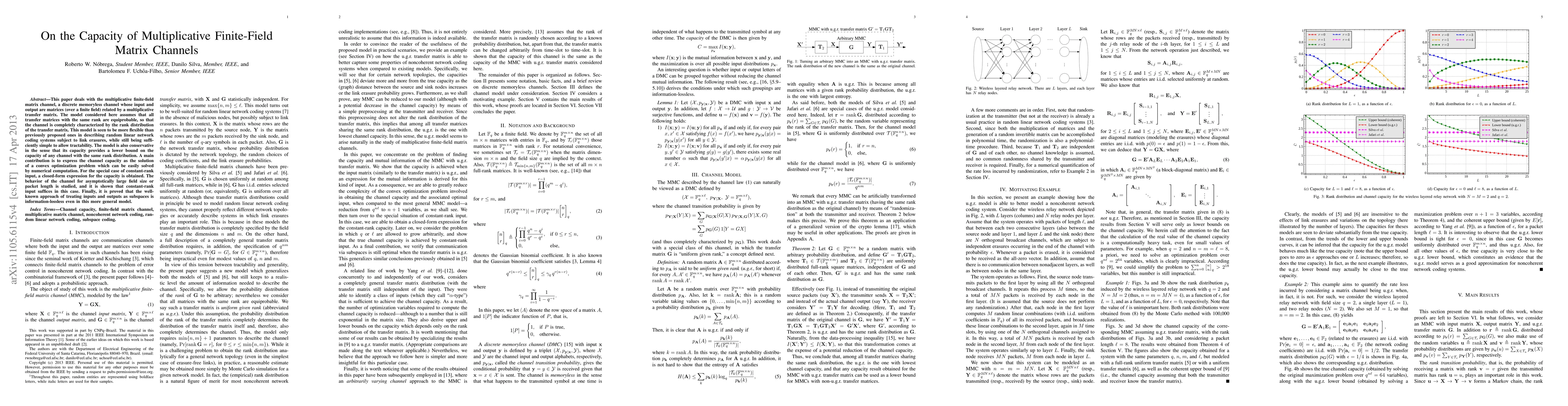 This paper deals with the multiplicative finite-field matrix channel, a discrete memoryless channel whose input and output are matrices (over a finite field) related by a multiplicative transfer matrix. The model considered here assumes that all transfer matrices with the same rank are equiprobable, so that the channel is completely characterized by the rank distribution of the transfer matrix. This model is seen to be more flexible than previously proposed ones in describing random linear network coding systems subject to link erasures, while still being sufficiently simple to allow tractability. The model is also conservative in the sense that its capacity provides a lower bound on the capacity of any channel with the same rank distribution. A main contribution is to express the channel capacity as the solution of a convex optimization problem which can be easily solved by numerical computation. For the special case of constant-rank input, a closed-form expression for the capacity is obtained. The behavior of the channel for asymptotically large field size or packet length is studied, and it is shown that constant-rank input suffices in this case. Finally, it is proved that the well-known approach of treating inputs and outputs as subspaces is information-lossless even in this more general model.