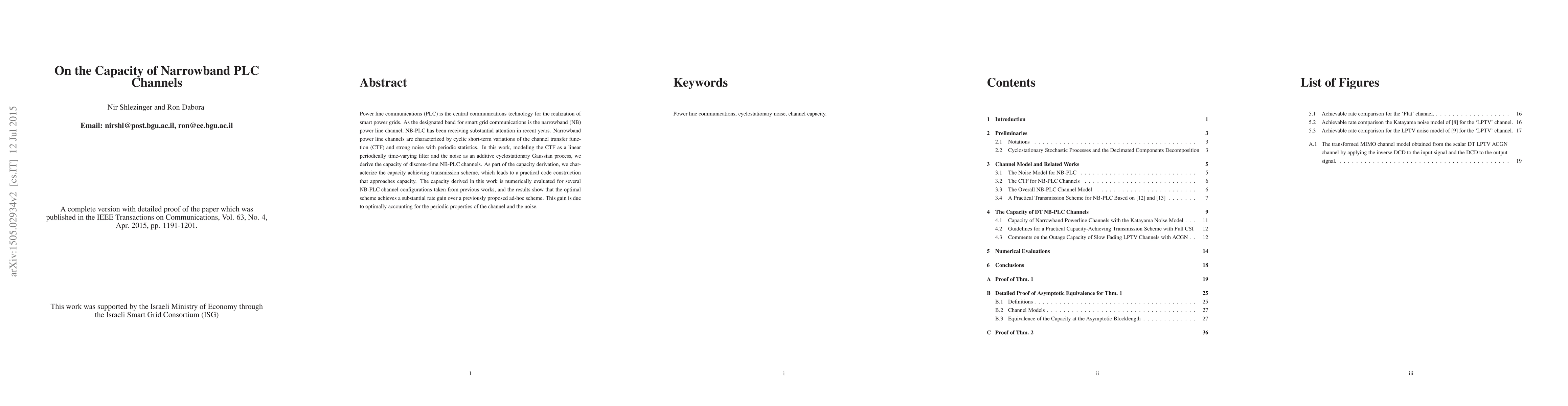 This paper models narrowband power line communication channels as linear periodically time-varying filters and derives their capacity using an additive cyclostationary Gaussian noise model. The study proposes a practical code construction that achieves near-optimal performance, demonstrating significant rate gains over previous ad-hoc methods.