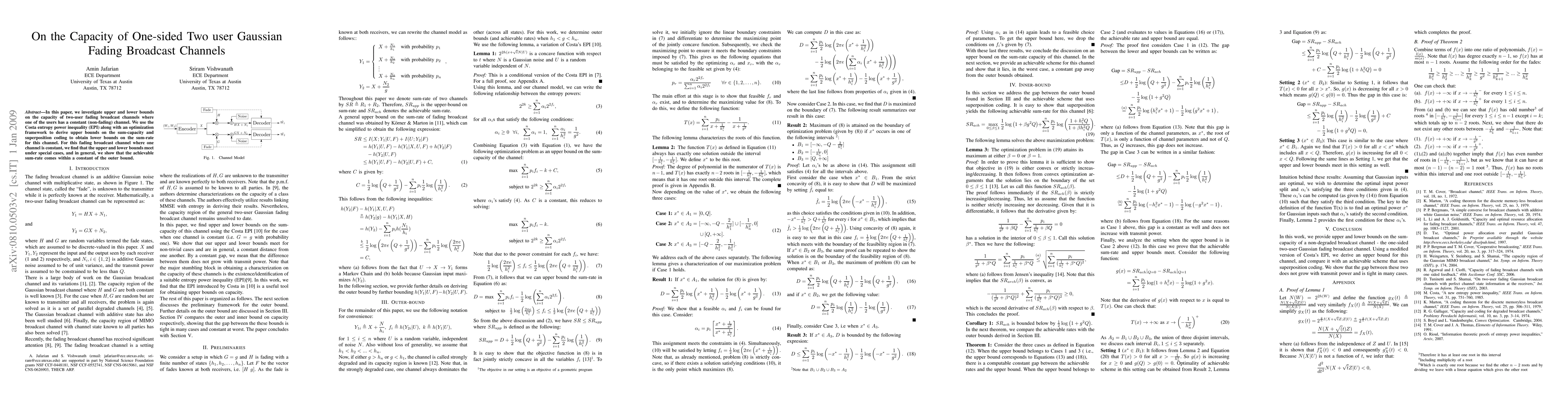 This paper explores the capacity bounds of a two-user Gaussian fading broadcast channel with one constant channel. It employs the Costa entropy power inequality and optimization to derive upper bounds and superposition coding for lower bounds, finding that the bounds converge under specific conditions and generally remain within a constant gap.