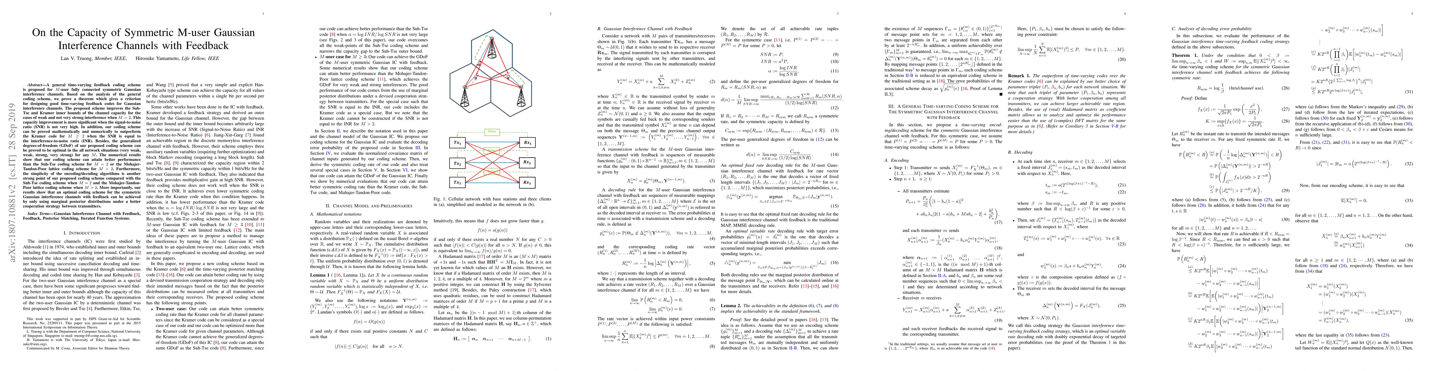 The paper proposes a novel time-varying feedback coding scheme for symmetric $M$-user Gaussian interference channels, proving its optimality in generalized degrees-of-freedom across various network conditions. The scheme significantly improves channel capacity over existing methods, especially at moderate SNR levels, and offers simpler encoding/decoding algorithms compared to alternative approaches.